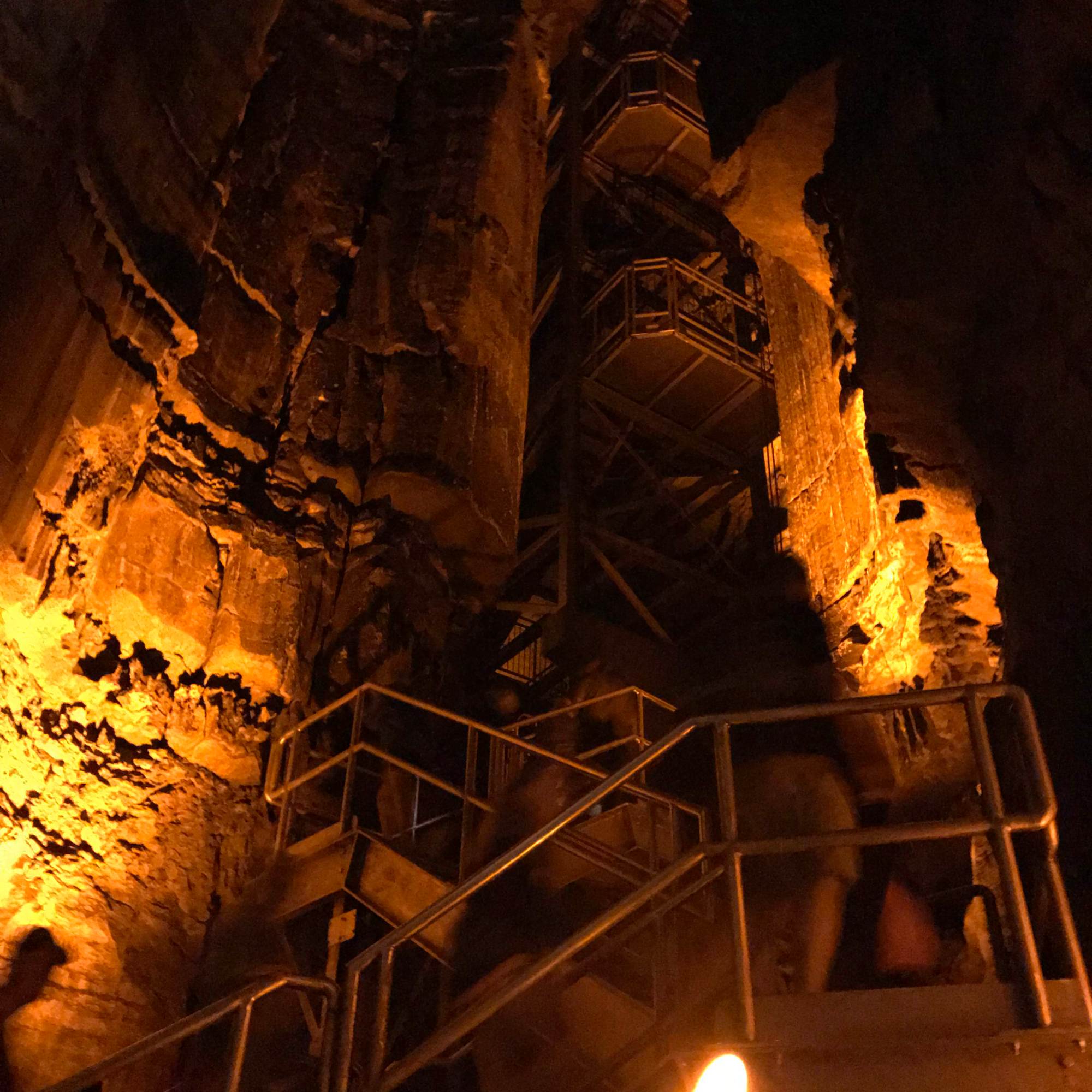 The entrance is 240 feet under ground (the entrance as we know it today was blown out using dynamite in 1931) and, if you were to drive the length of this cave, you could drive to Chicago with room to spare. It’s the longest in the world! This tour had a lot of stairs!