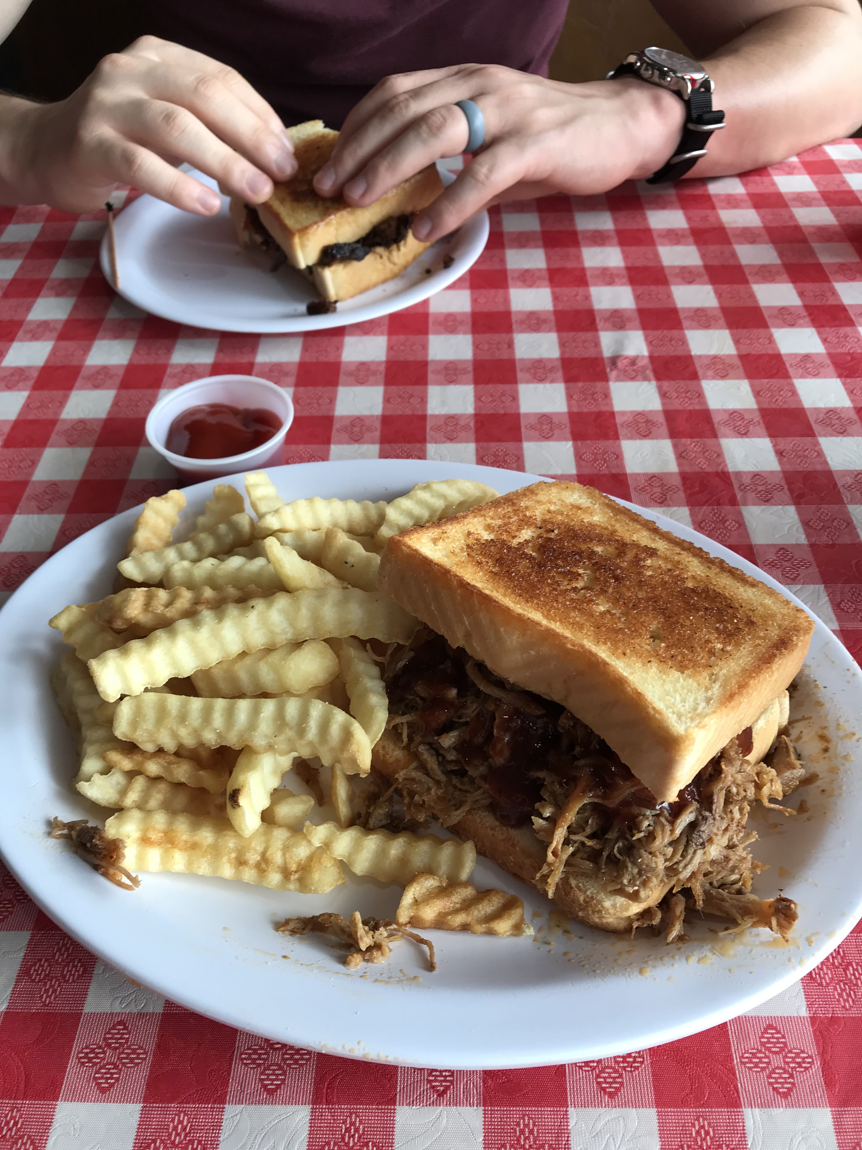 Bucky Bee’s BBQ – a 9 minute drive from the exit of the park, Bucky Bee’s had good pulled pork!