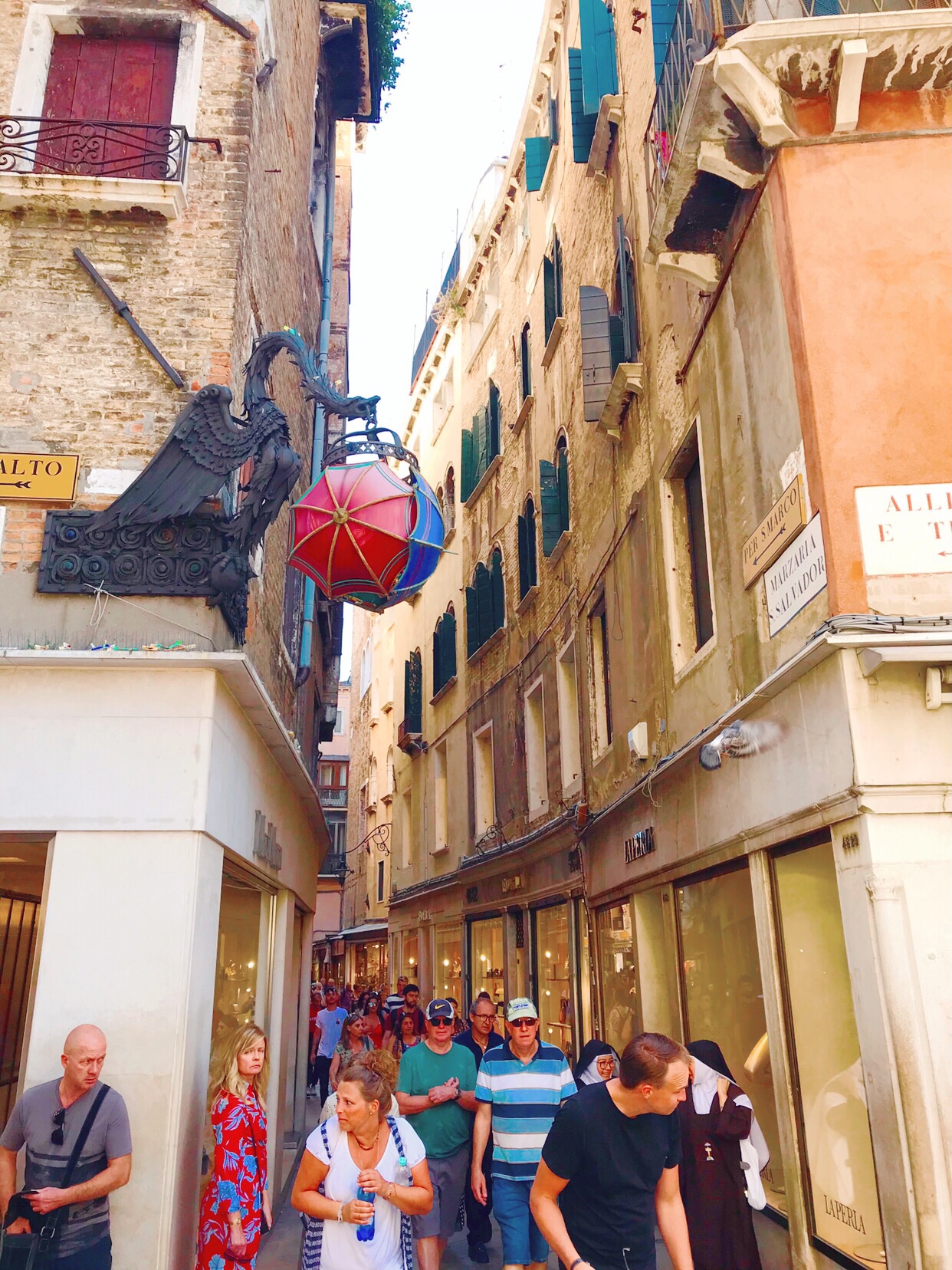 As is probably obvious, there were a LOT of tourists (and of course people selling little gadgets like those self propelling helicopters) at St Mark’s. We didn’t climb the Campanile di San Marco because the lines were so long, and we quickly realized that this was a place to visit first thing in the morning.