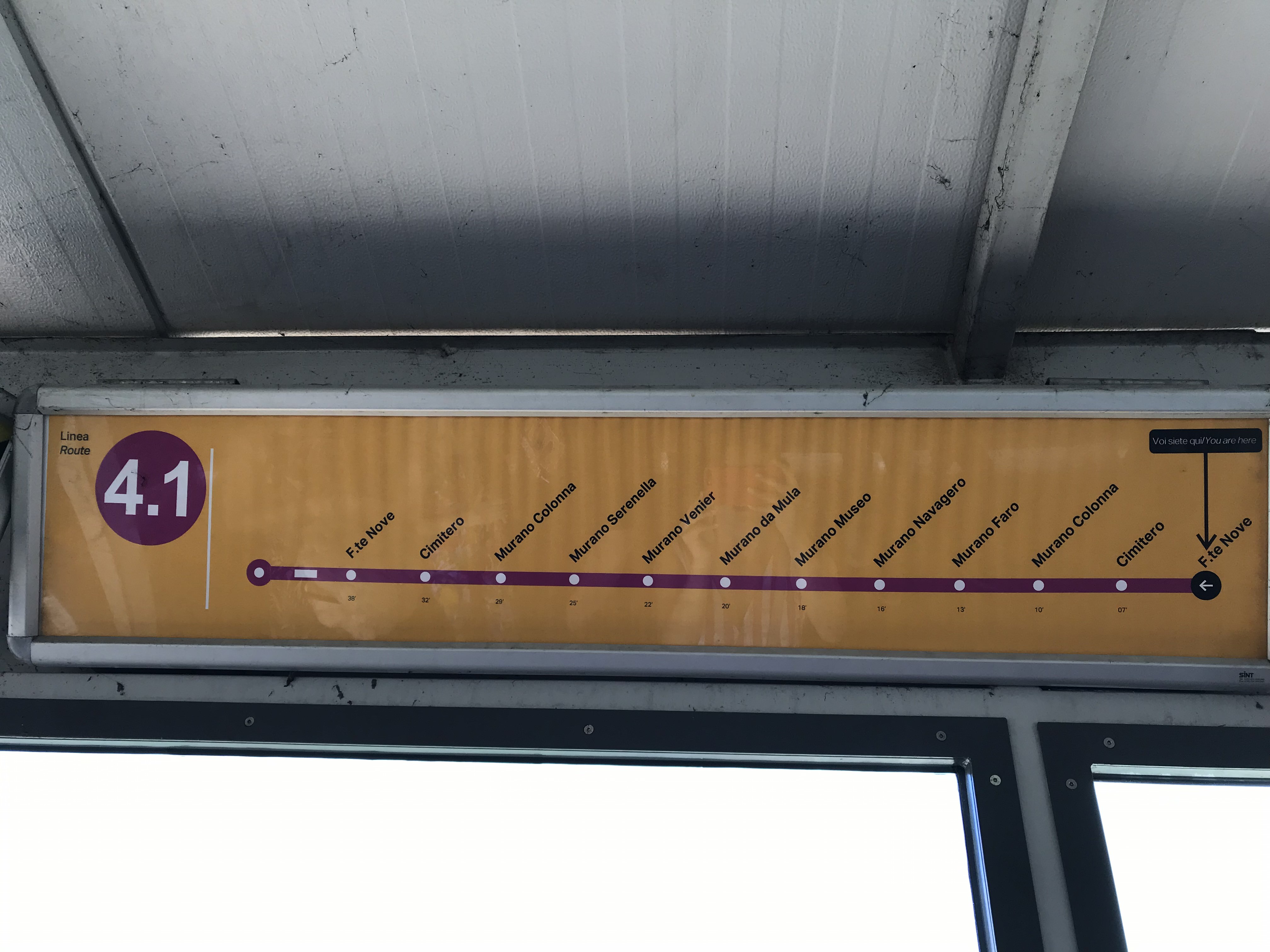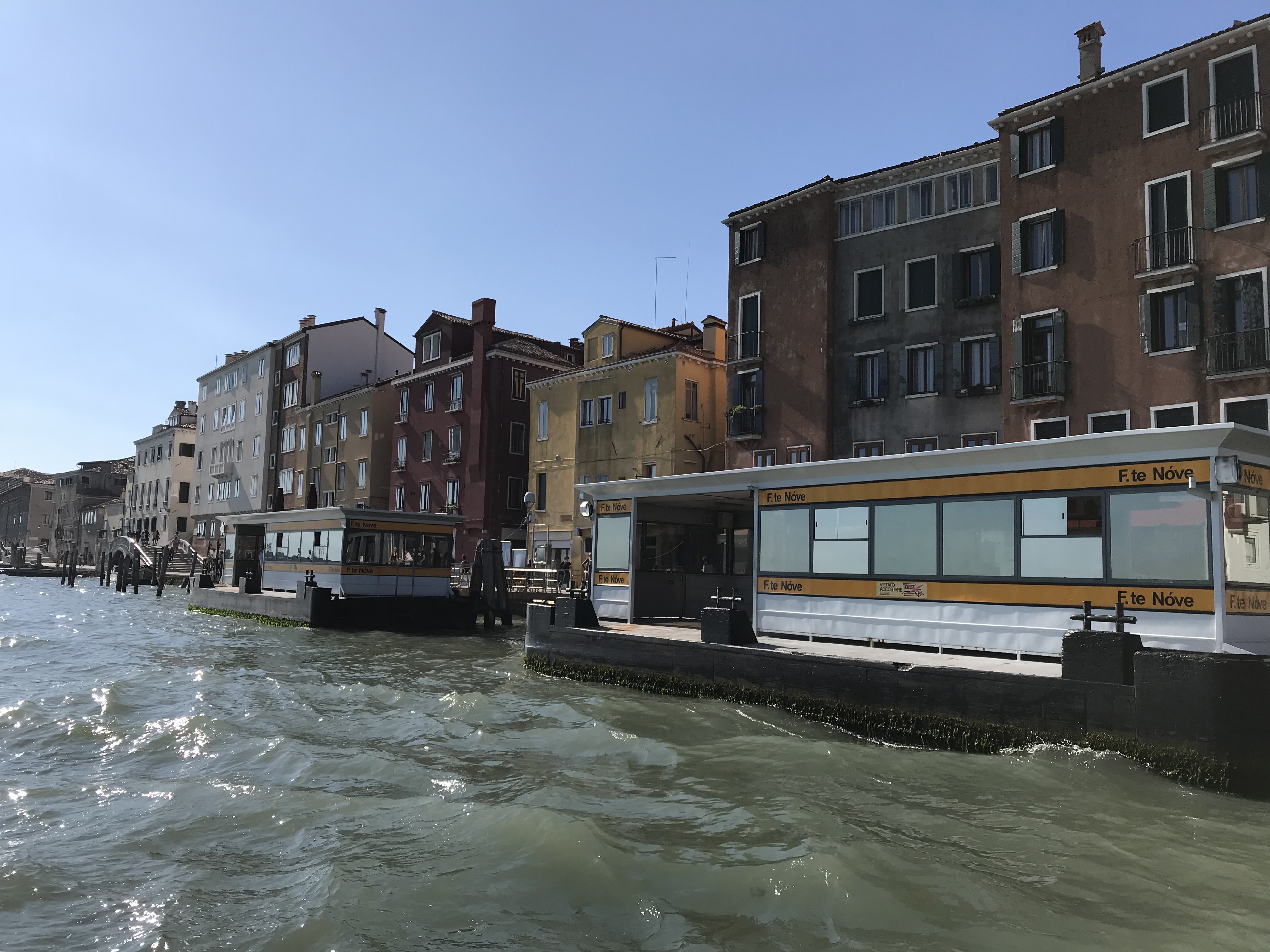 We walked from our Airbnb to F.te Nove B & C at the corner of Fondamente Nove & Calle de la Colombia to catch either the 4.1 or 4.2 Vaporetto (a commuter boat/ferry). We were able to buy tickets to the Vaporetto at a self serve kiosk or from a cashier before getting on the ferry.