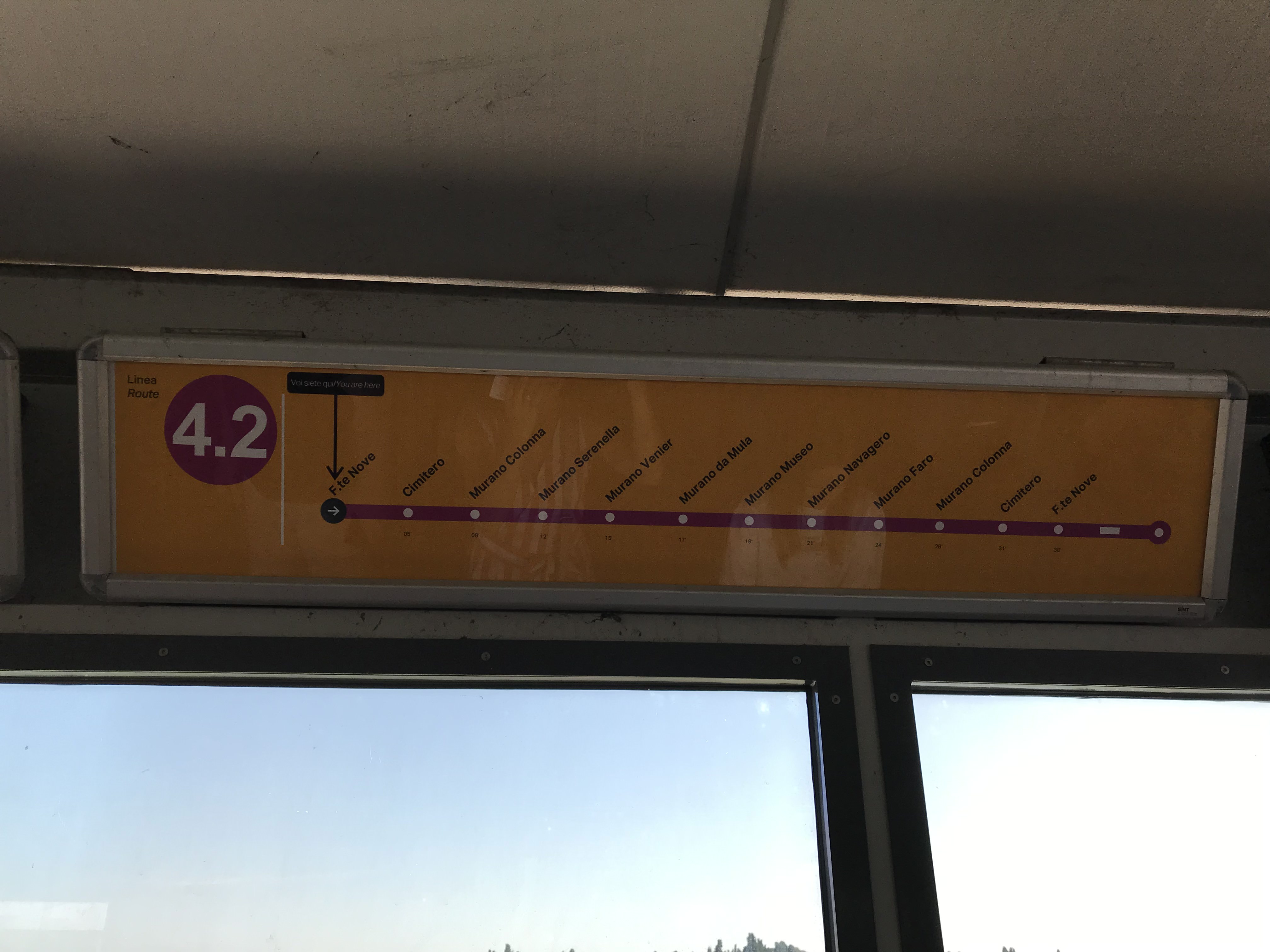 We paid €20 each for a day pass (you can use the same pass to ride a vaporetto down the Grand Canal!). We also decided to buy a day pass because the single use ticket was only good for 75 minutes, and we figured we’d be on Murano for a few hours. They say you can buy tickets aboard, but the drivers seemed annoyed when people tried to do that – if your ticket wasn’t validated, you could receive a fine. You could also buy the Venezia Unica Tourist Pass and add on an ACTV Travel Card for cheaper fares, but the cost of the pass didn’t make sense for the short time we’d spend in Venice.