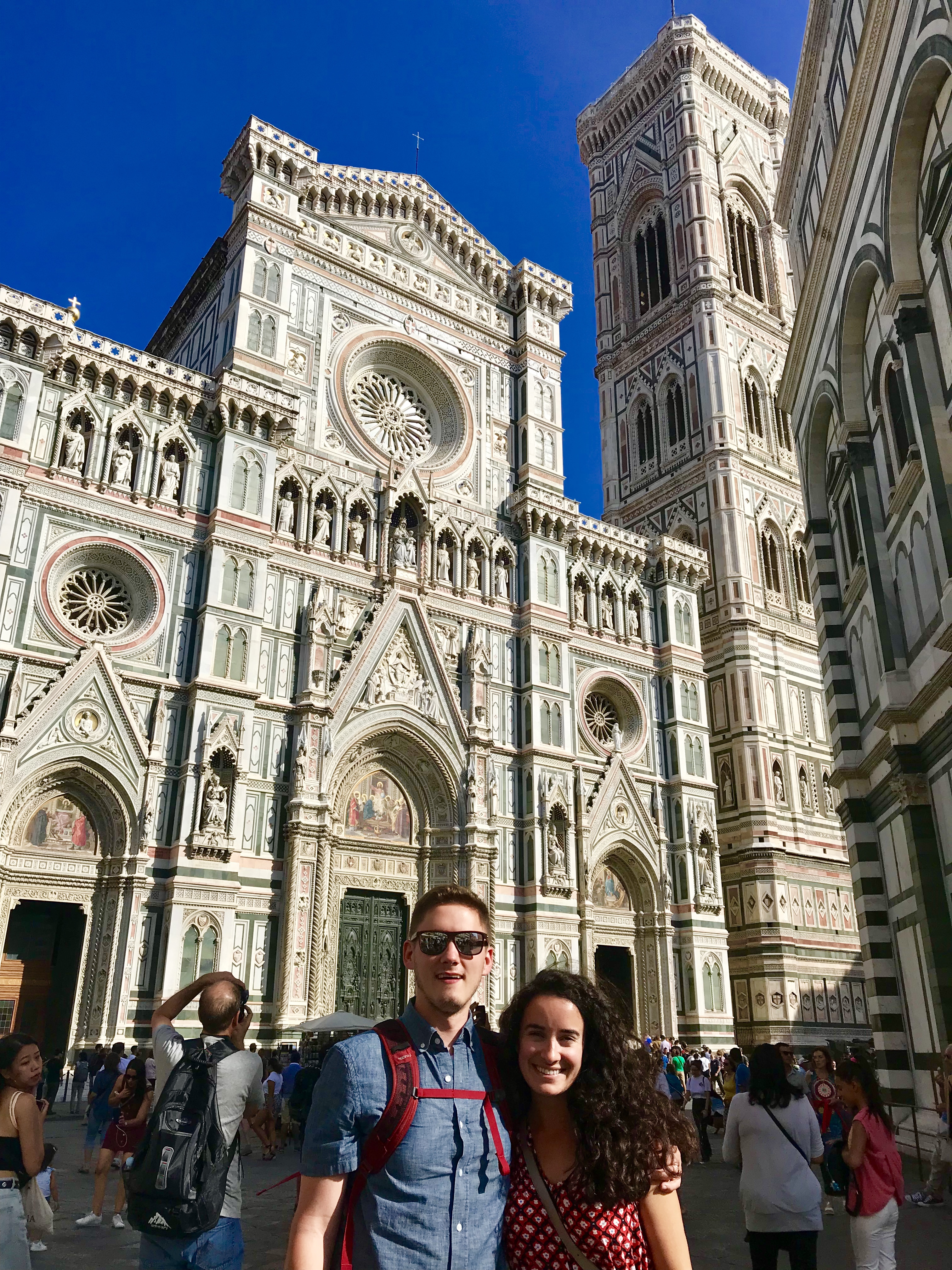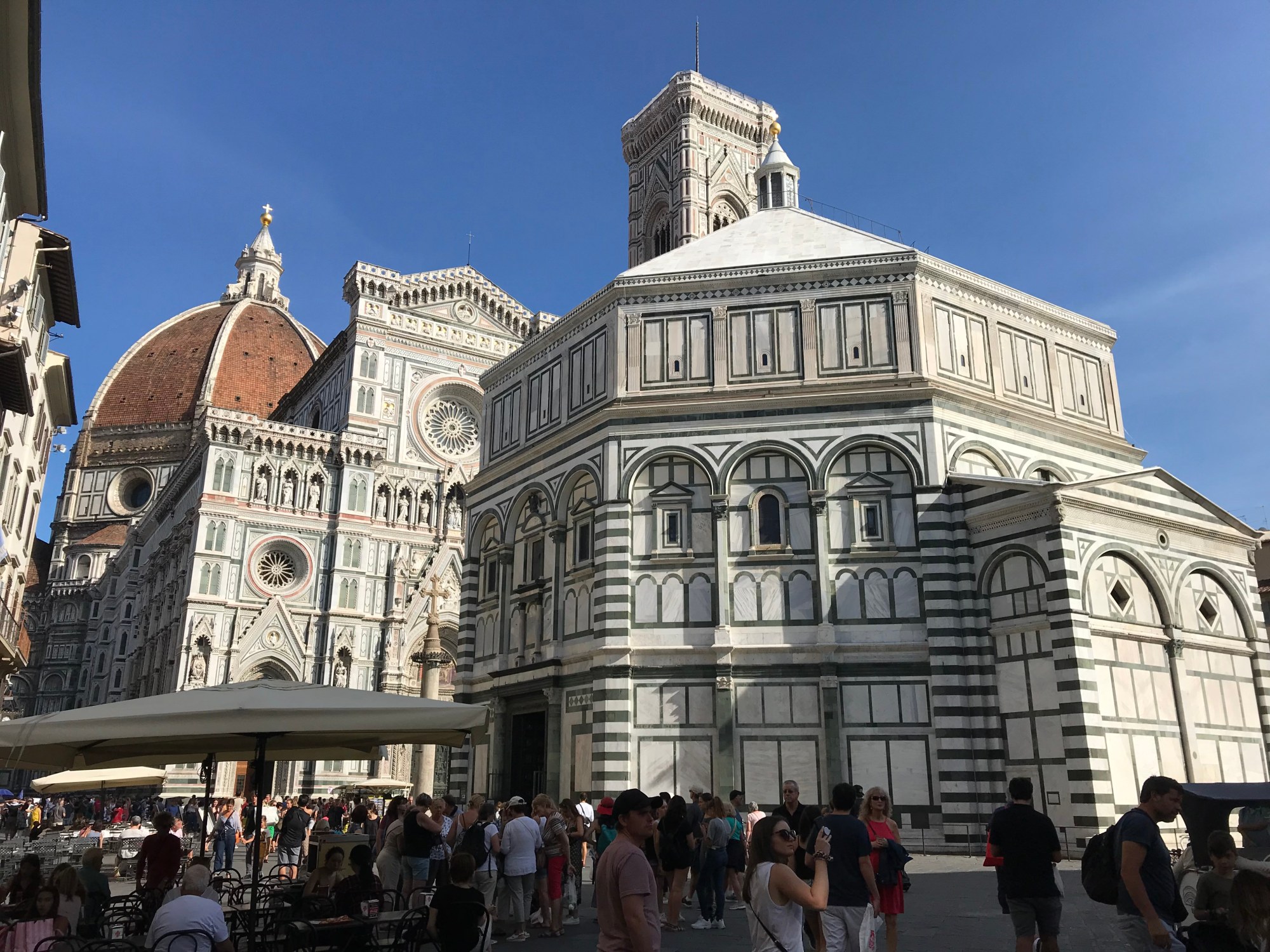 Located in Piazza Duomo, Cathedral of Santa Maria del Fiore was built in the 1200s and is well known for Brunelleschi’s Dome and Giotto’s Bell Tower, the Campanile. The entire cathedral and tower are covered in green, white, and red marble, and it quite literally glistens in the sunshine. It was the most striking church we saw across Italy. The Cathedral is free to enter, and tickets can be bought (ideally in advance!) to the Dome (€20) and Campanile (€15).