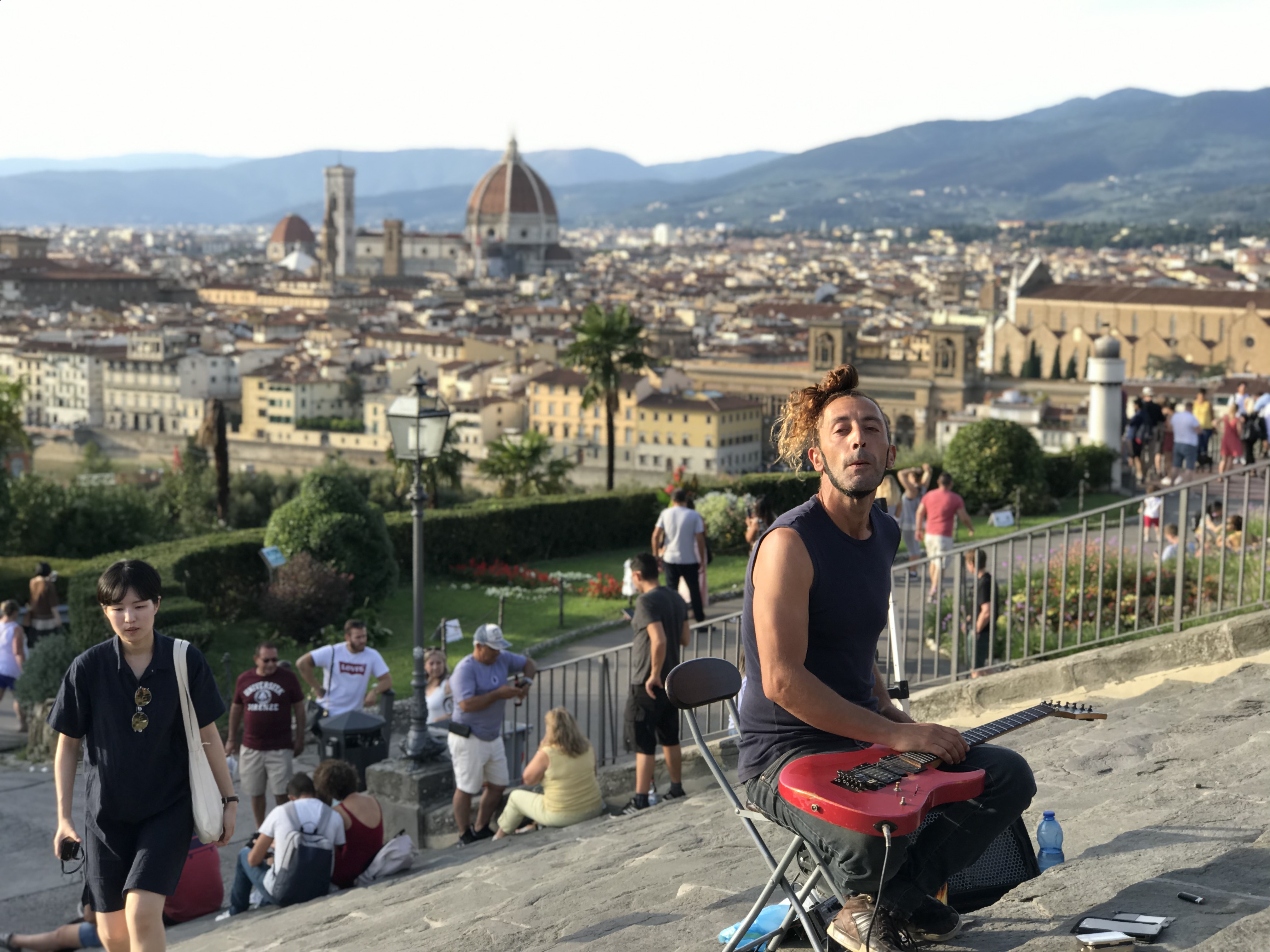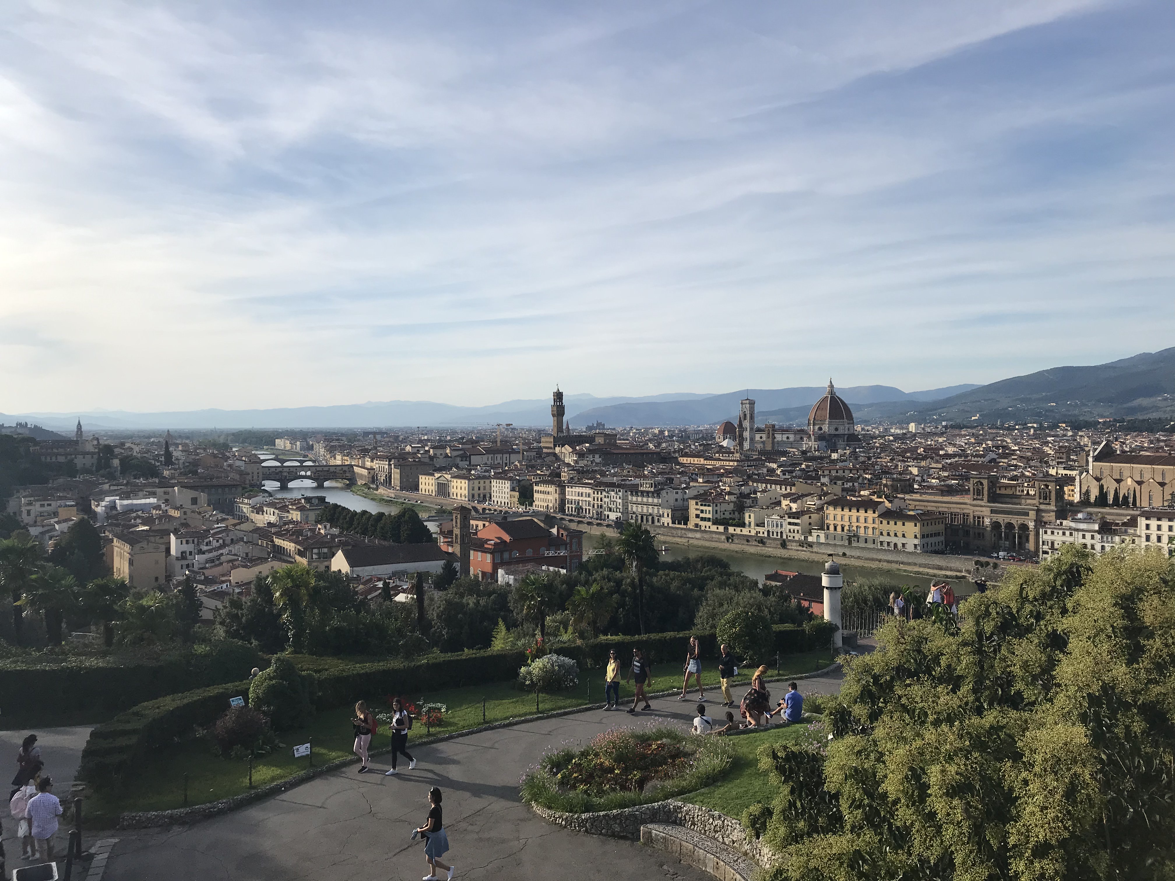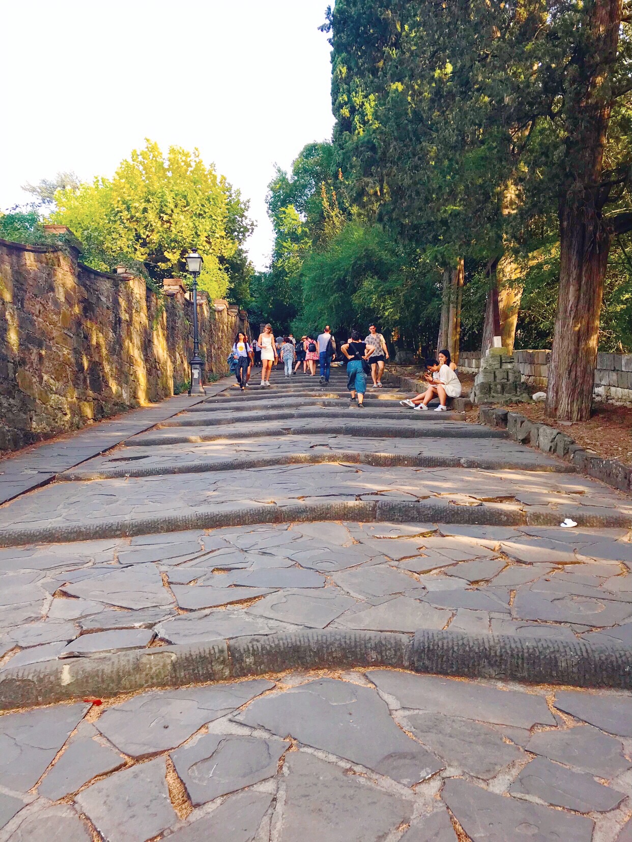 The Boboli Gardens were at the end of a long, steady uphill climb up a cobbled sidewalk and had some great people watching. We bought a beer and a pretzel and, after walking around the gardens for a bit and taking in the view of Firenze, sat and listened to some live music on the steps leading up to the gardens.