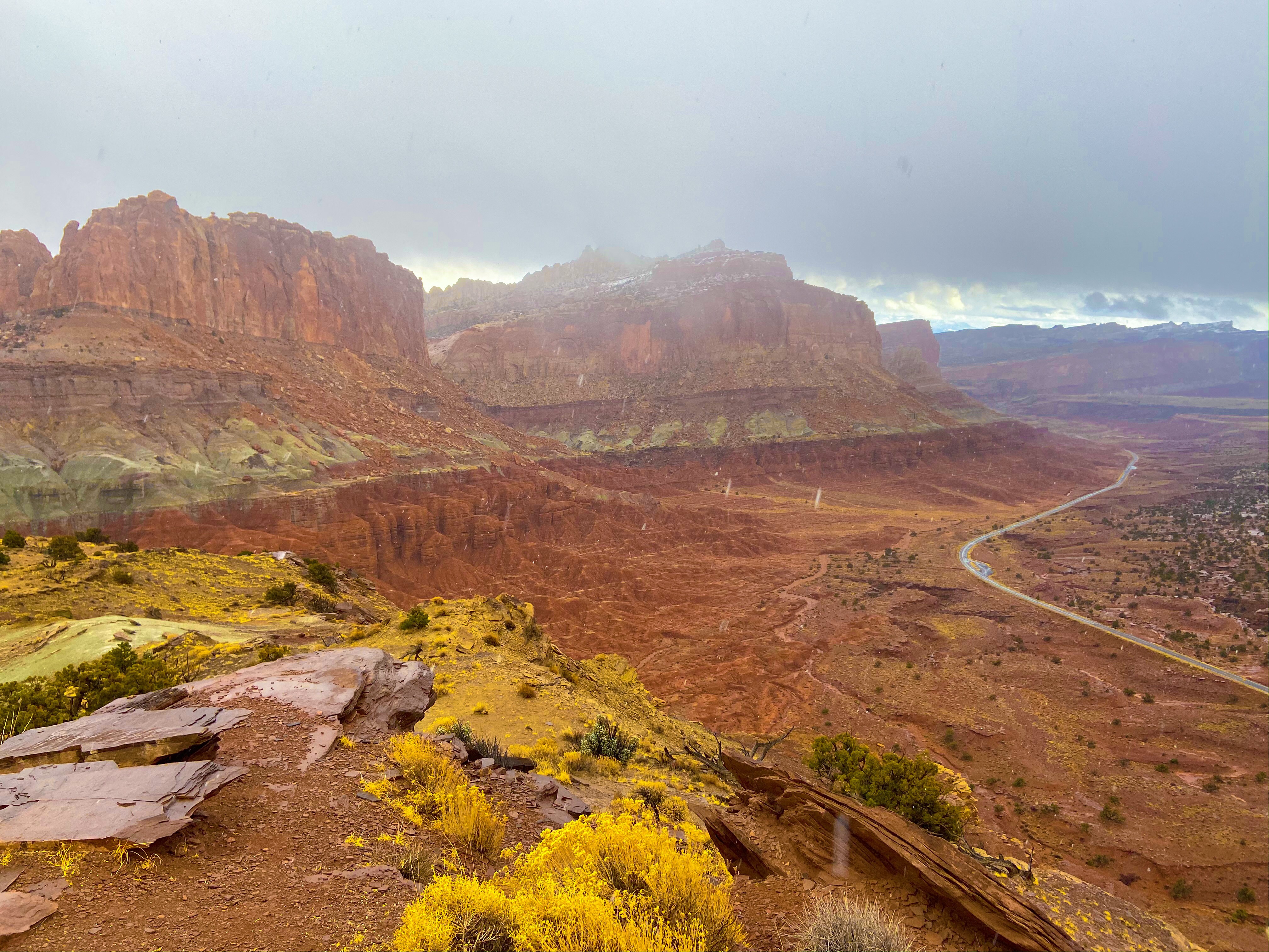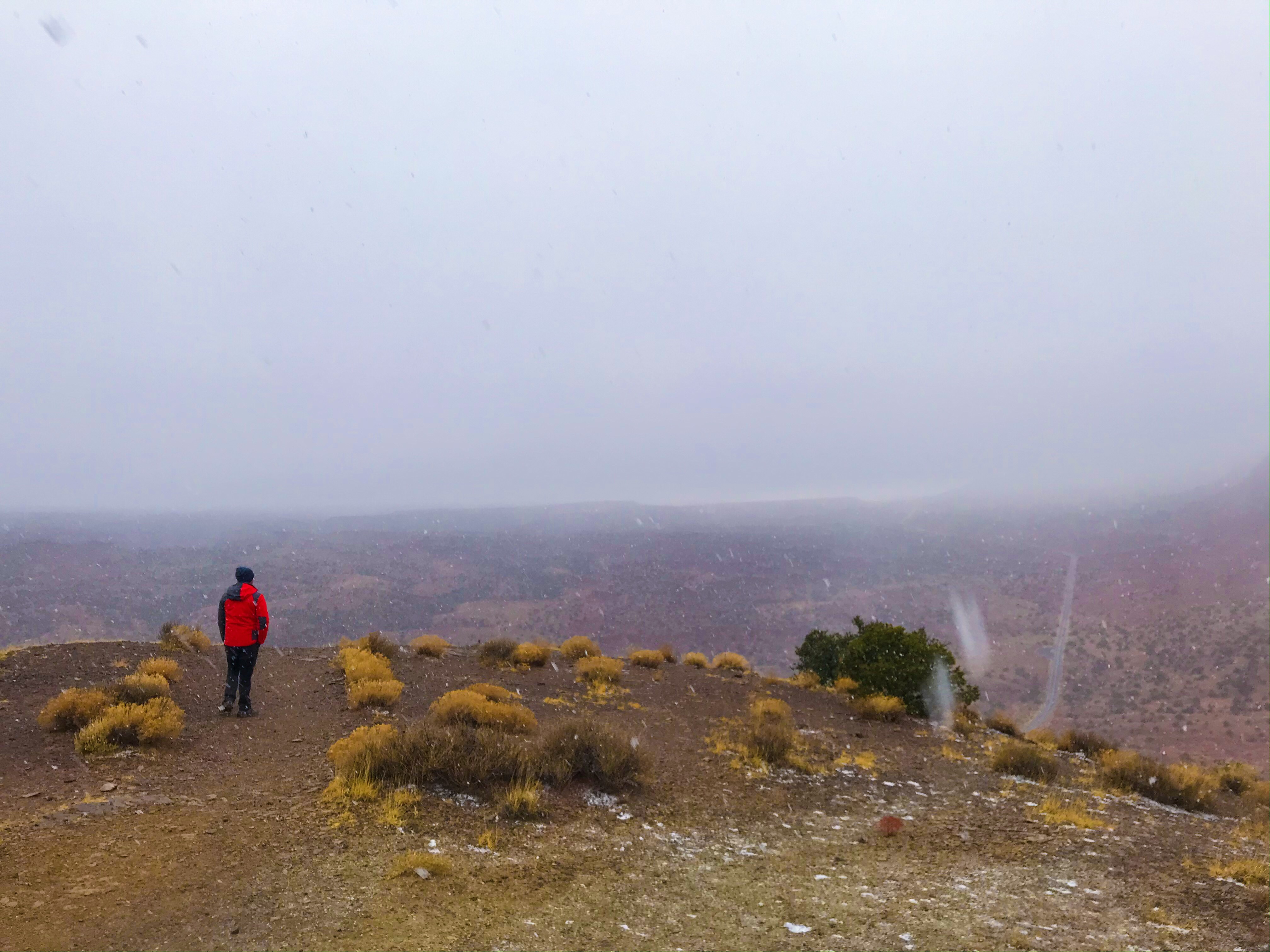 The next half hour or so, we slowly wound our way down the backside of the rock formation – this is where the views truly stood out. Maybe it was the time of year, the blizzard, or something else, but it was gorgeous even as snow froze to our eye lashes and the wind pushed us down the hill faster than we would’ve normally went.