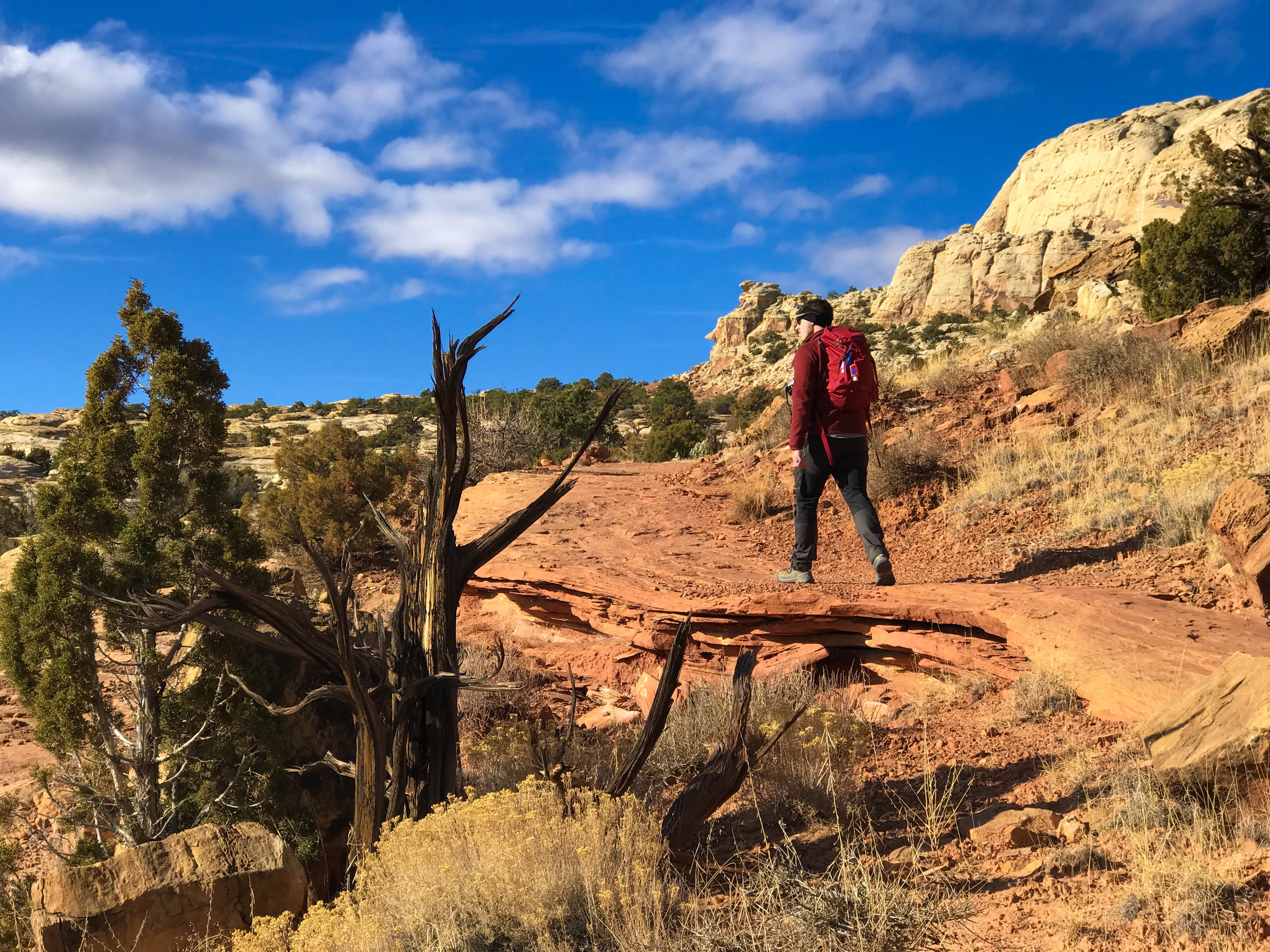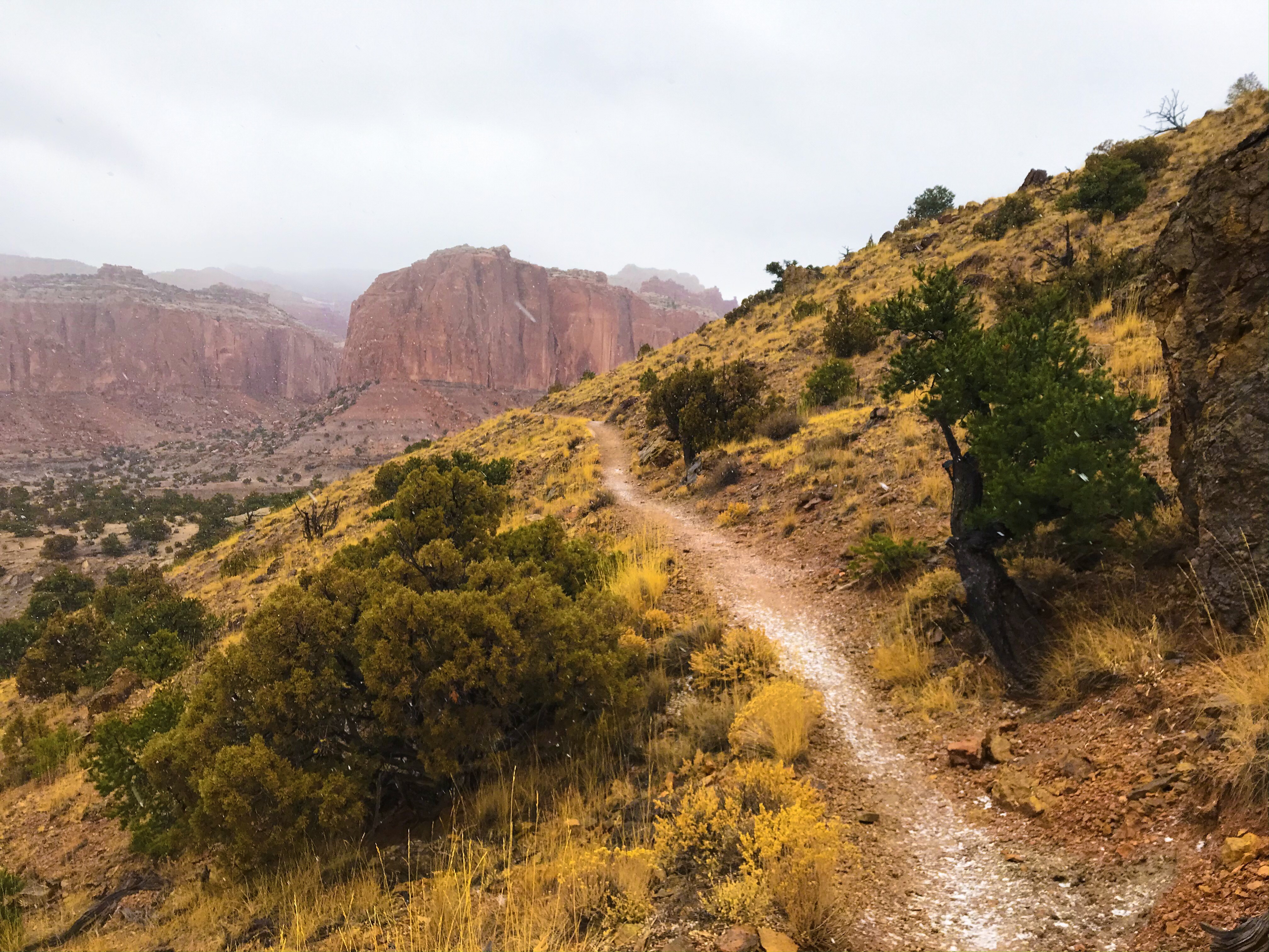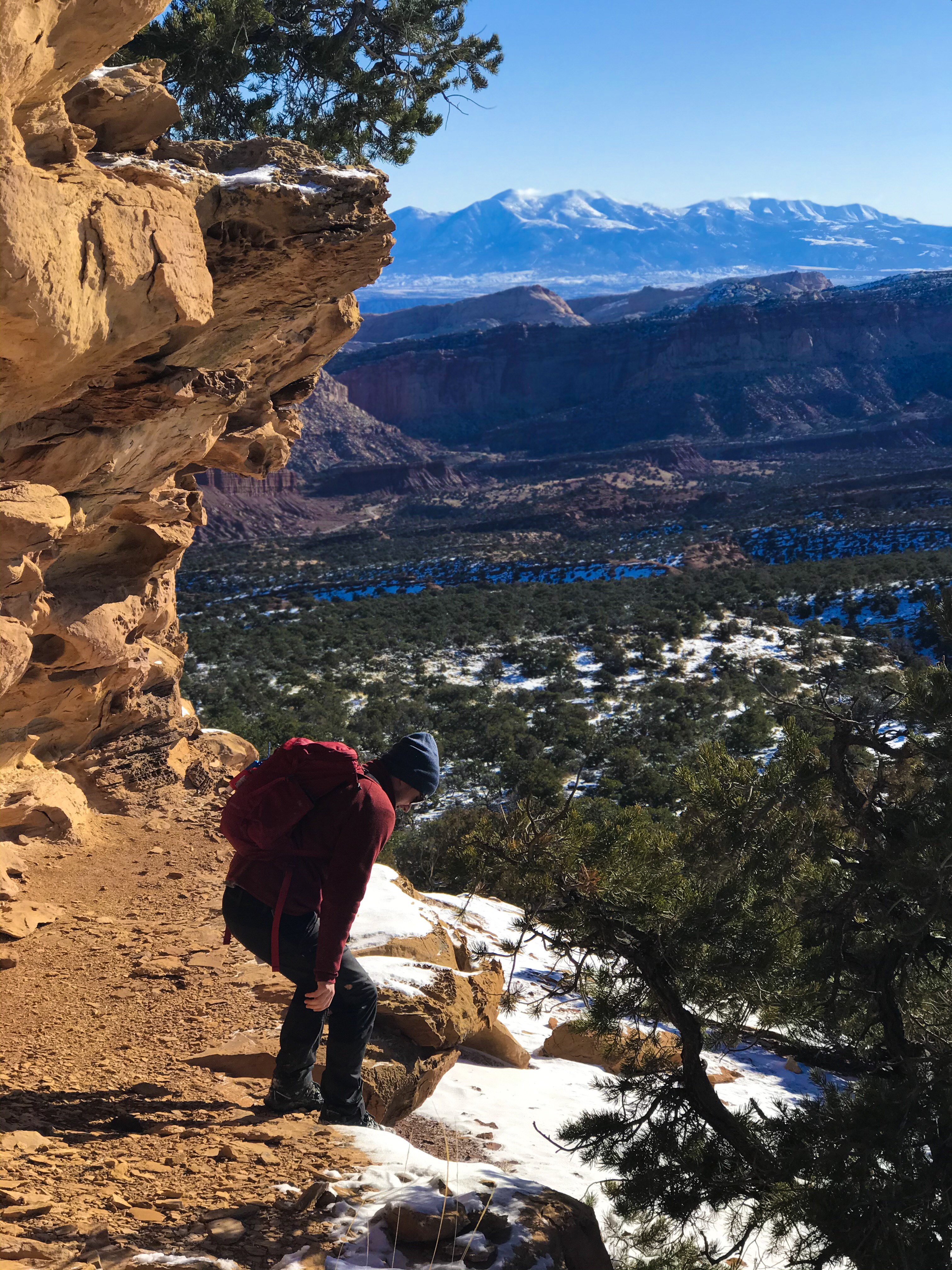 One of the things I’ve noticed about hiking in Utah is that you’re very often exposed to the elements with no shade or protection from trees. If the trails had been covered in snow, we honestly would’ve been screwed. It may have been cold, but at least we could figure out where to go next, even if we had to stop for a minute to search.