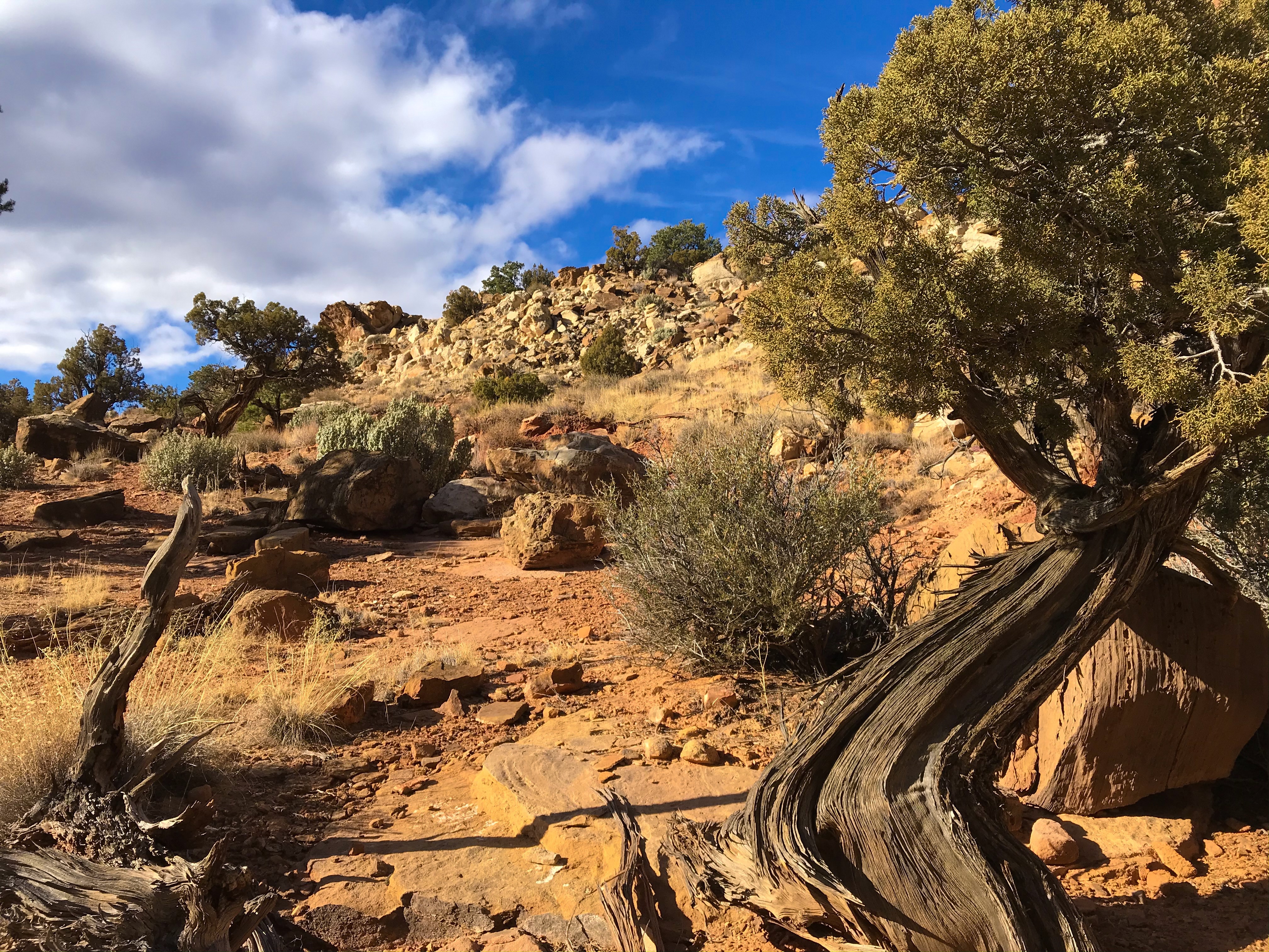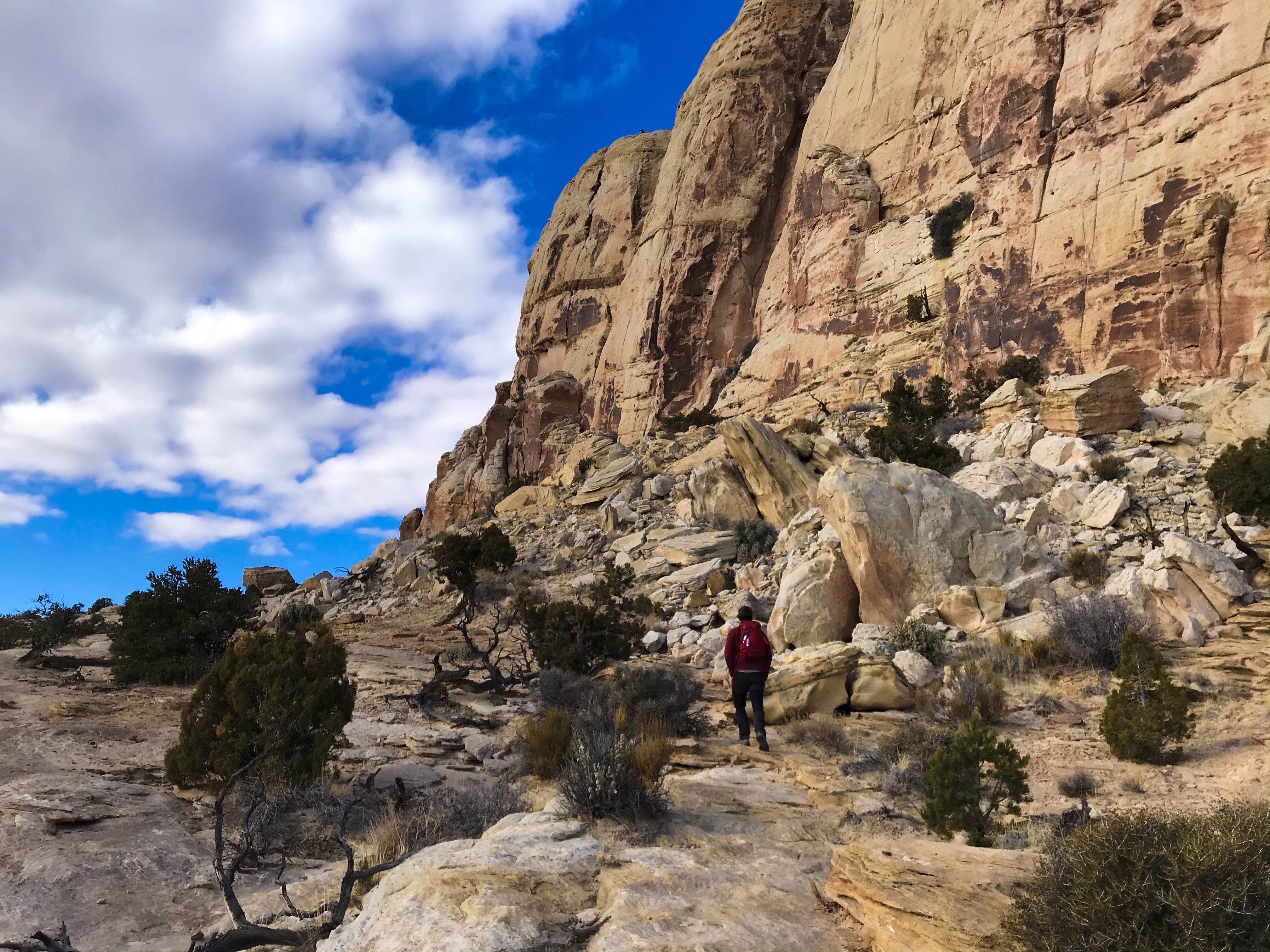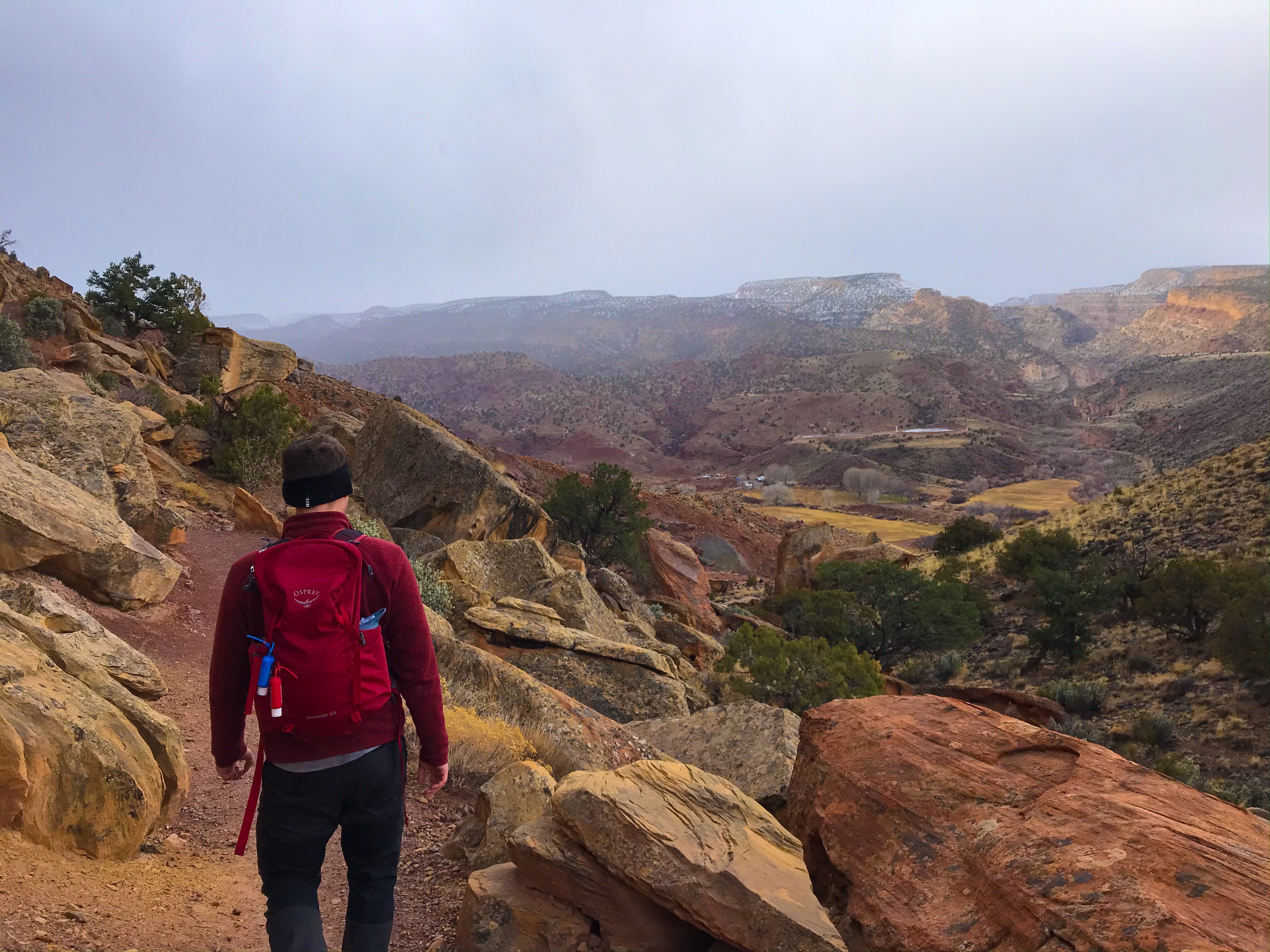 One of the things I’ve noticed about hiking in Utah is that you’re very often exposed to the elements with no shade or protection from trees. If the trails had been covered in snow, we honestly would’ve been screwed. It may have been cold, but at least we could figure out where to go next, even if we had to stop for a minute to search.