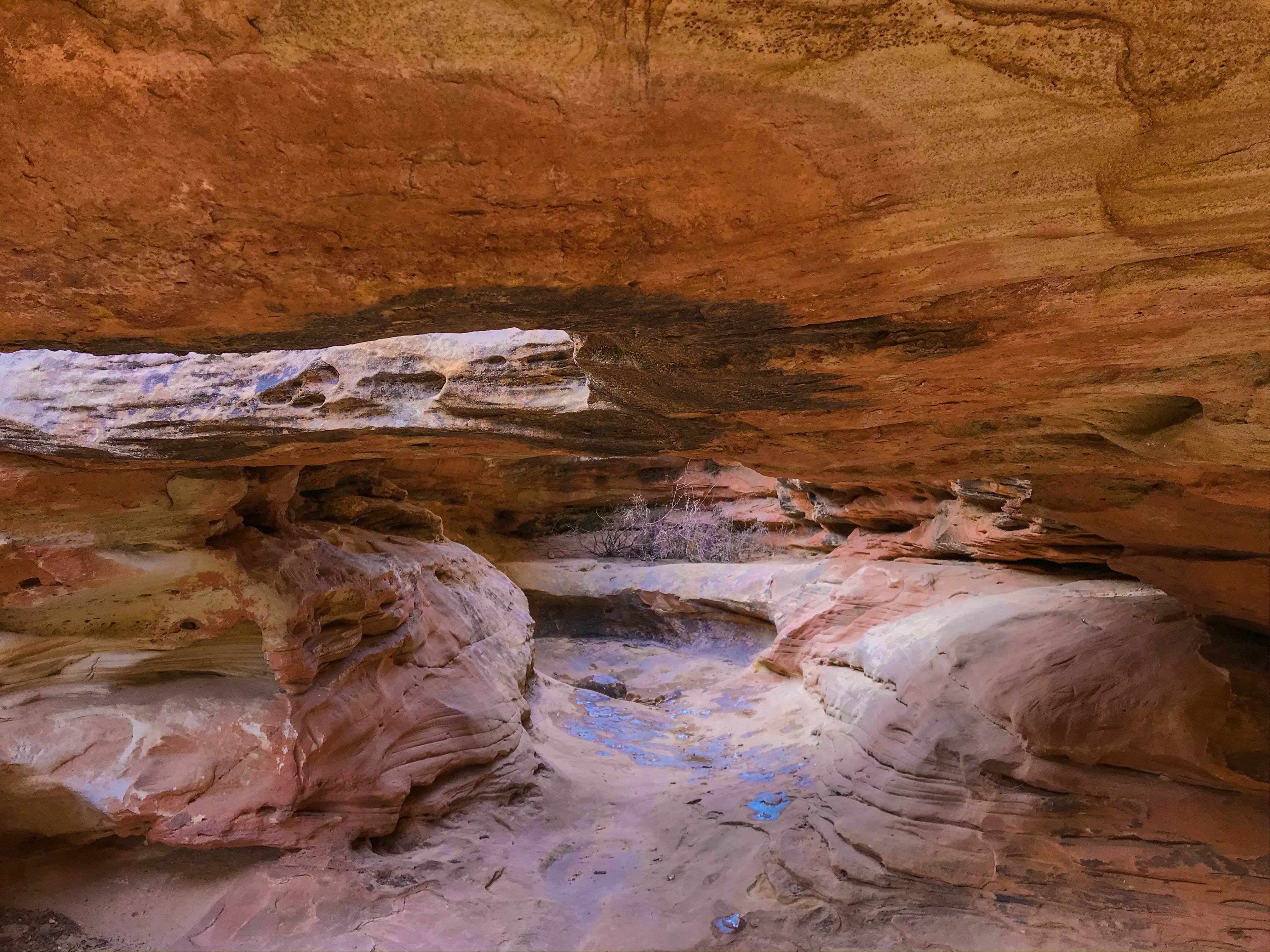 After an easy walk through the canyon, the path opened up – the sun came out suddenly after stormy and cold weather. It was glorious! We found an area off the regular path that clearly used to be a waterfall – it was at once incredible and scary because the area still flash floods. Had it been three days previous, we would’ve been literally swept away by the flash floods, and looking at the debris in the canyon reminded us that we were lucky to choose to travel when we did.