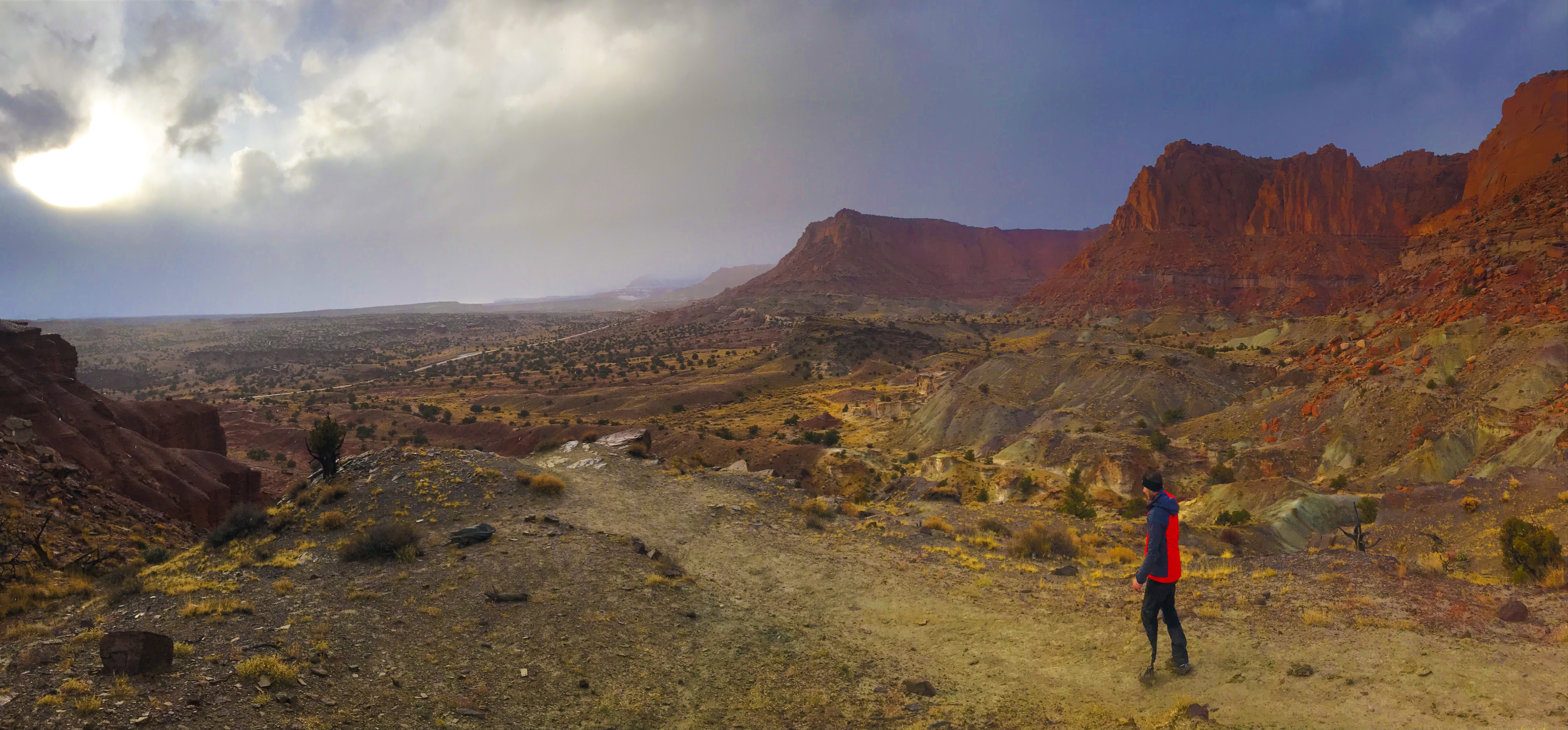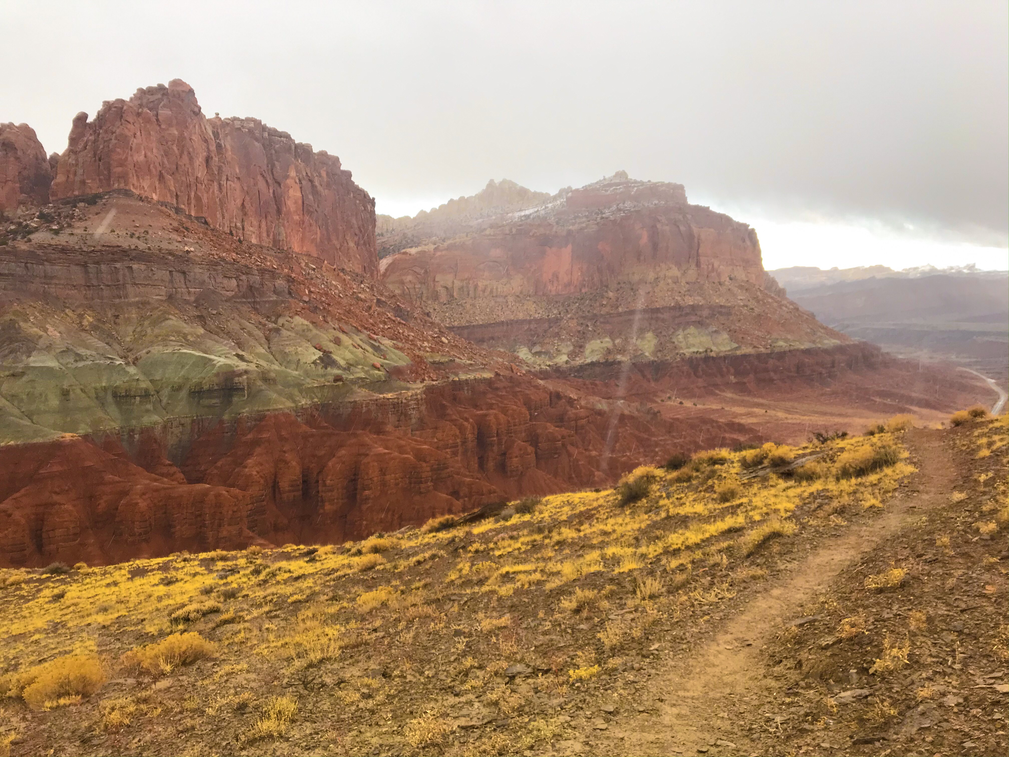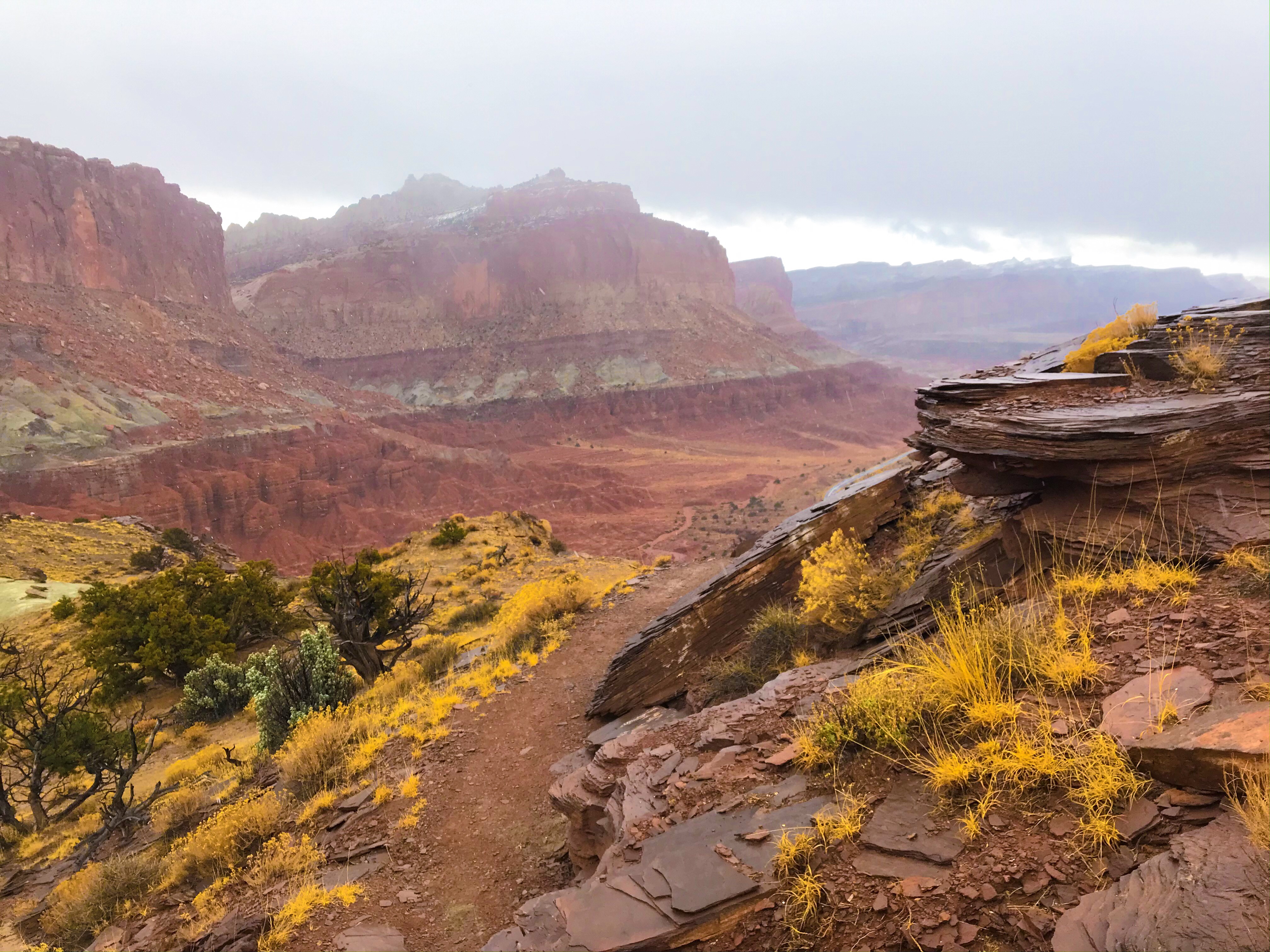 A quarter of the way, you see Capitol Dome in all it’s glory, and then about half way up the trail, you get side view of Hickman Bridge, finally ending at the Rim Overlook (both marked with a sign).