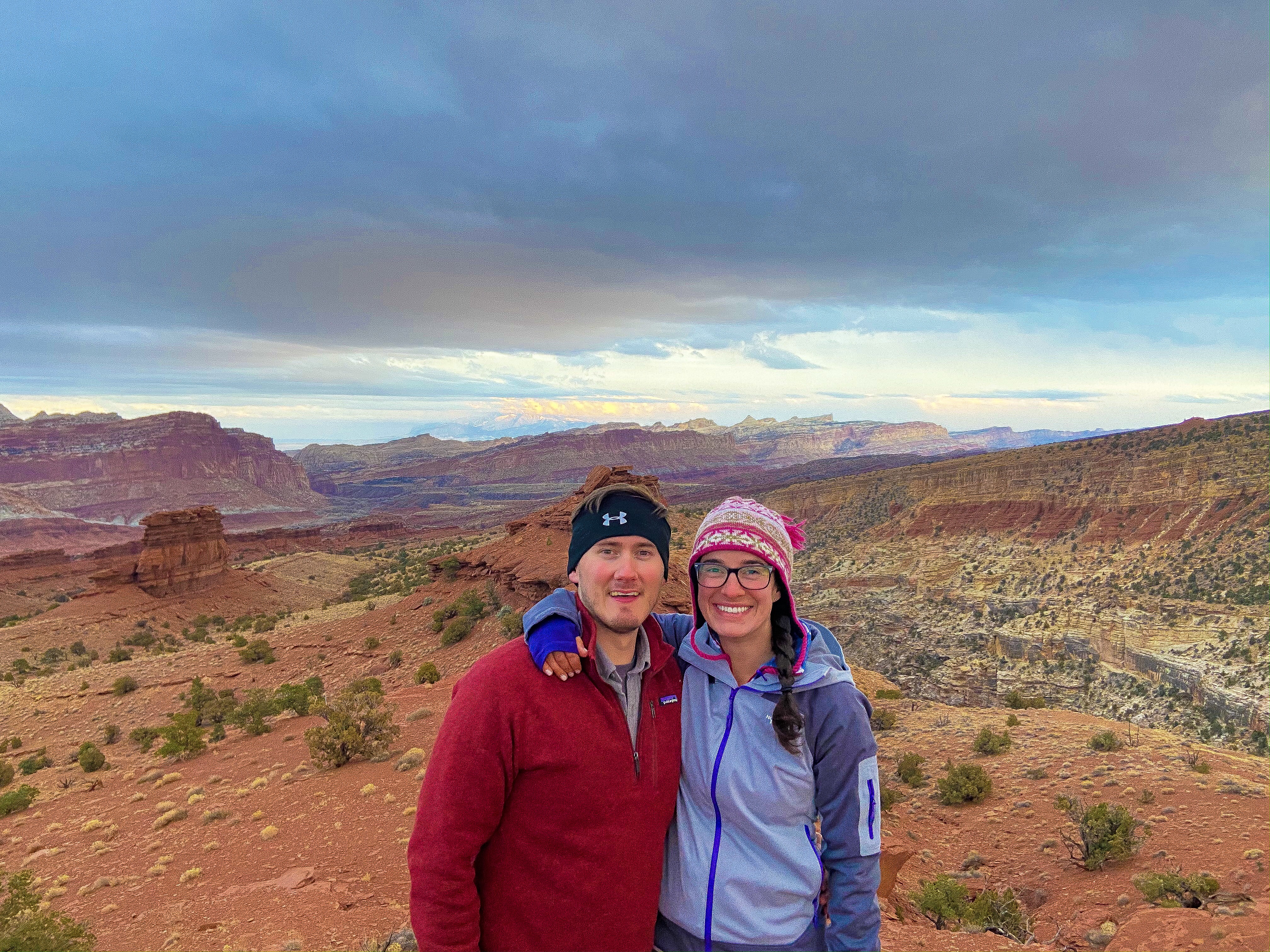 After Goblin Valley State Park, we wanted an easy hike to round out the day. Fremont Gorge was perfect for that with a short, steep ascent, and then a flat hike over the top of one of the rock formations. Even though we didn’t finish because dusk was hanging heavy over the park as the sun set in the sky, it was still a perfect way to end the day!