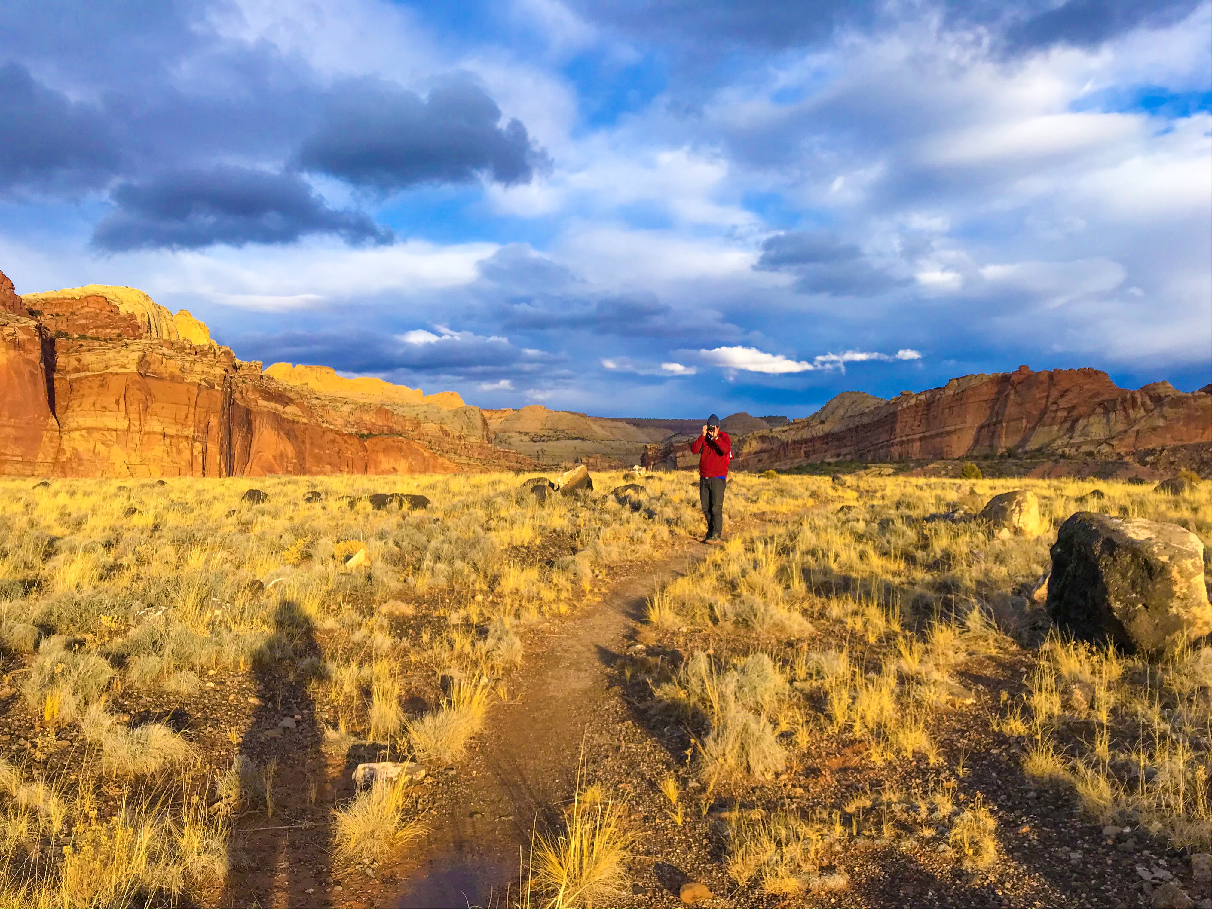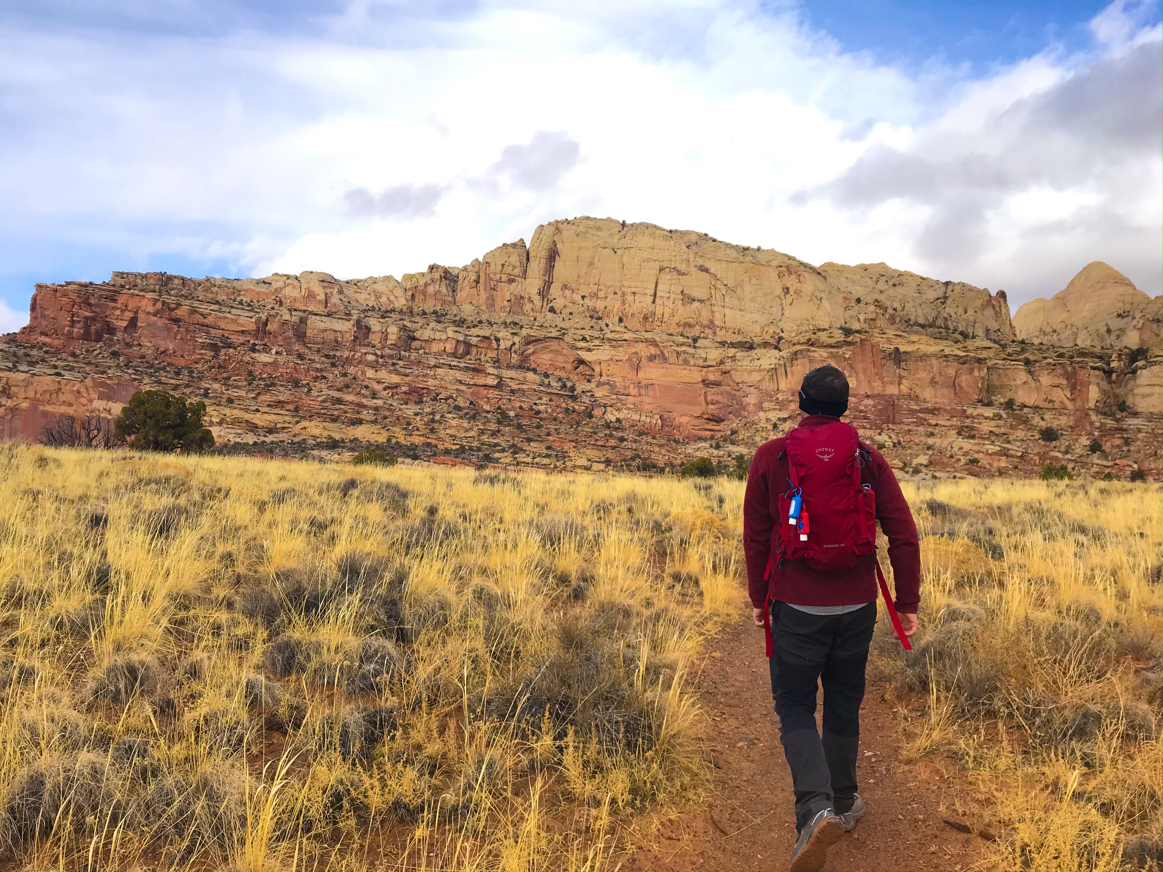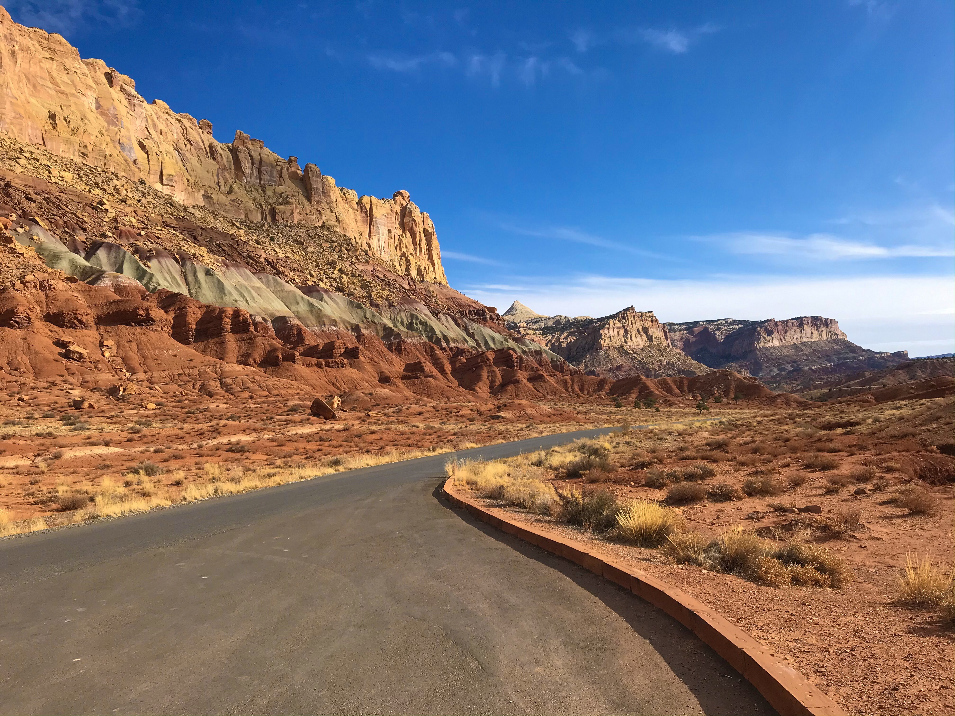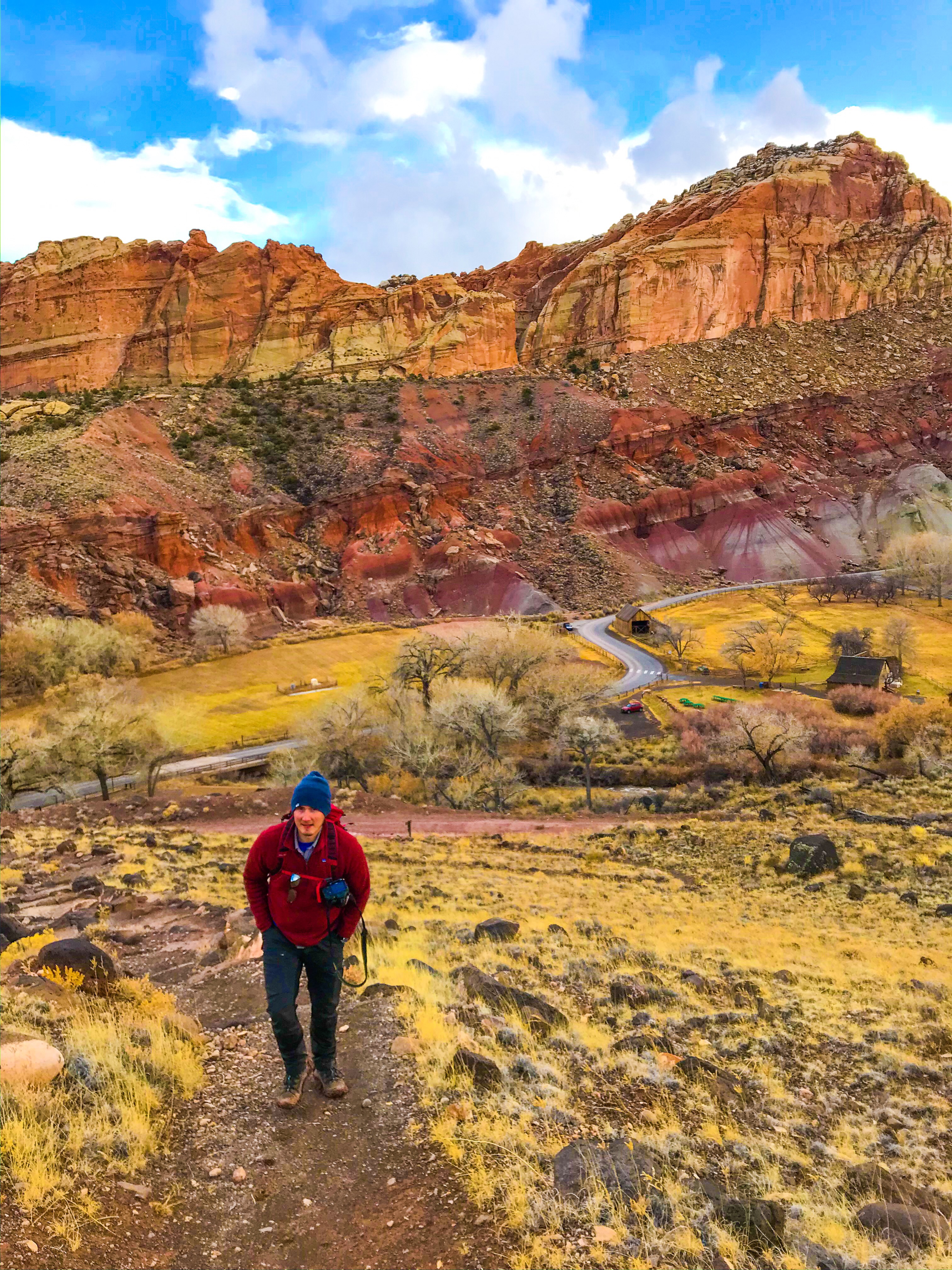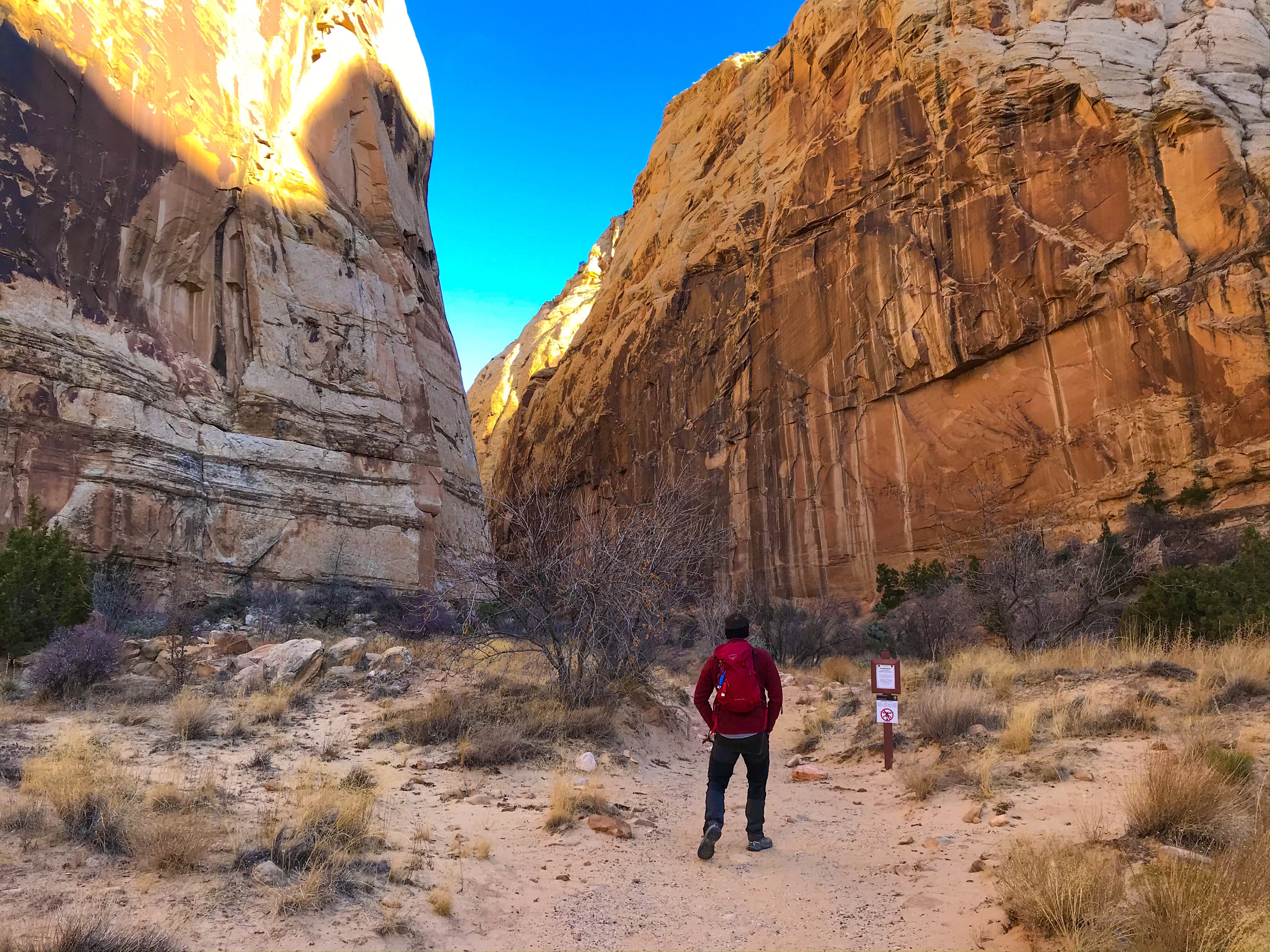 There are two main roads in Capitol Reef – Route 24 (running East to West) and the park’s Scenic Drive. During peak season, you pay $20 for access to the Scenic Drive, unless you have an America the Beautiful pass. The views are shocking, but if you’re just looking to hike, you can get away without paying as 90% of the hikes in the park are accessible outside of the Drive.
