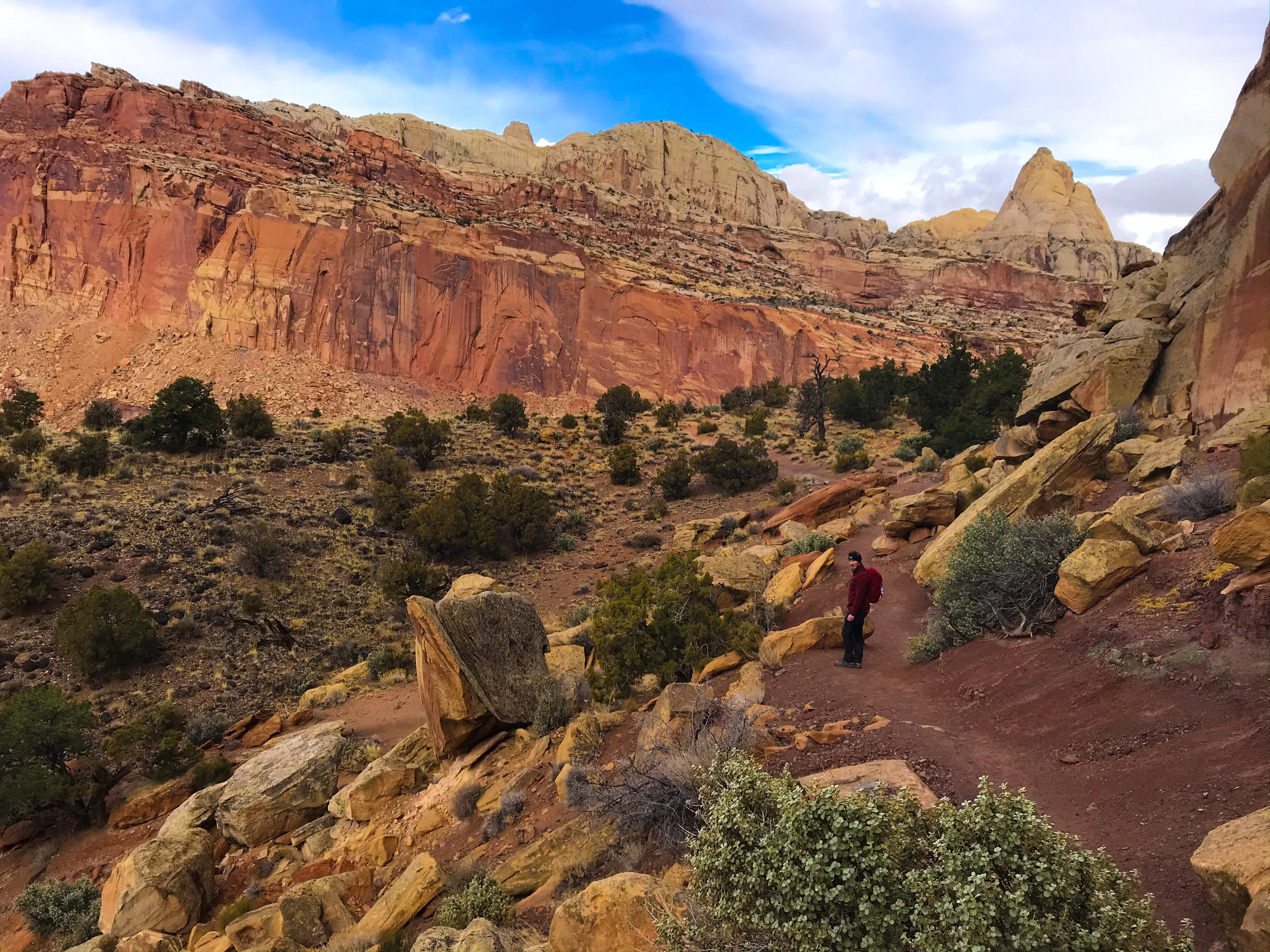Unlike back home in New England where there’s trail signs everywhere, the trails in Capitol Reef weren’t labeled at all – there were a few cairns (piles of rocks) placed throughout the trails. Some trails were easier to follow than others, but we kept joking that if there was a lot of snow, it would’ve been near impossible to follow most of the trails.