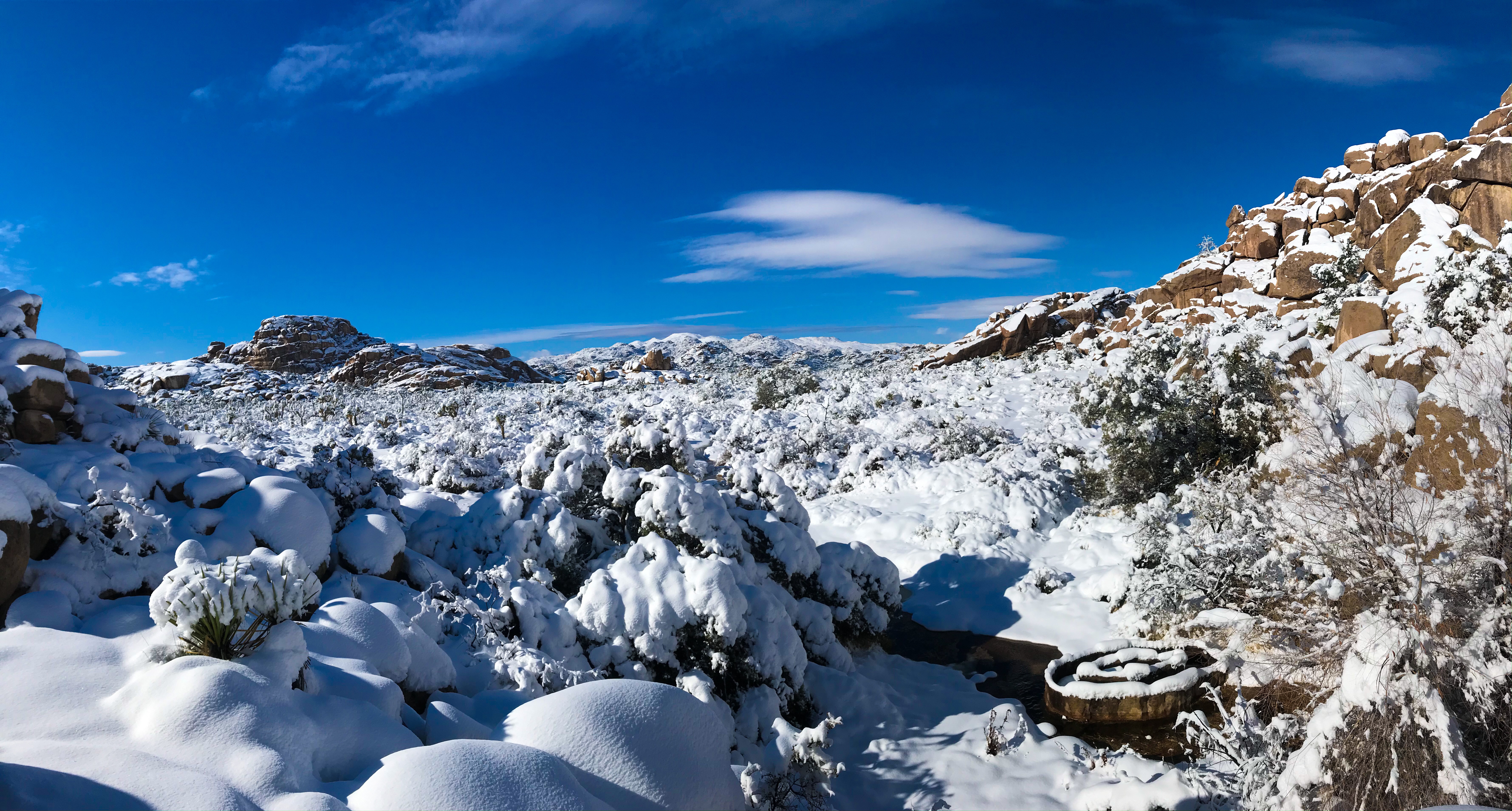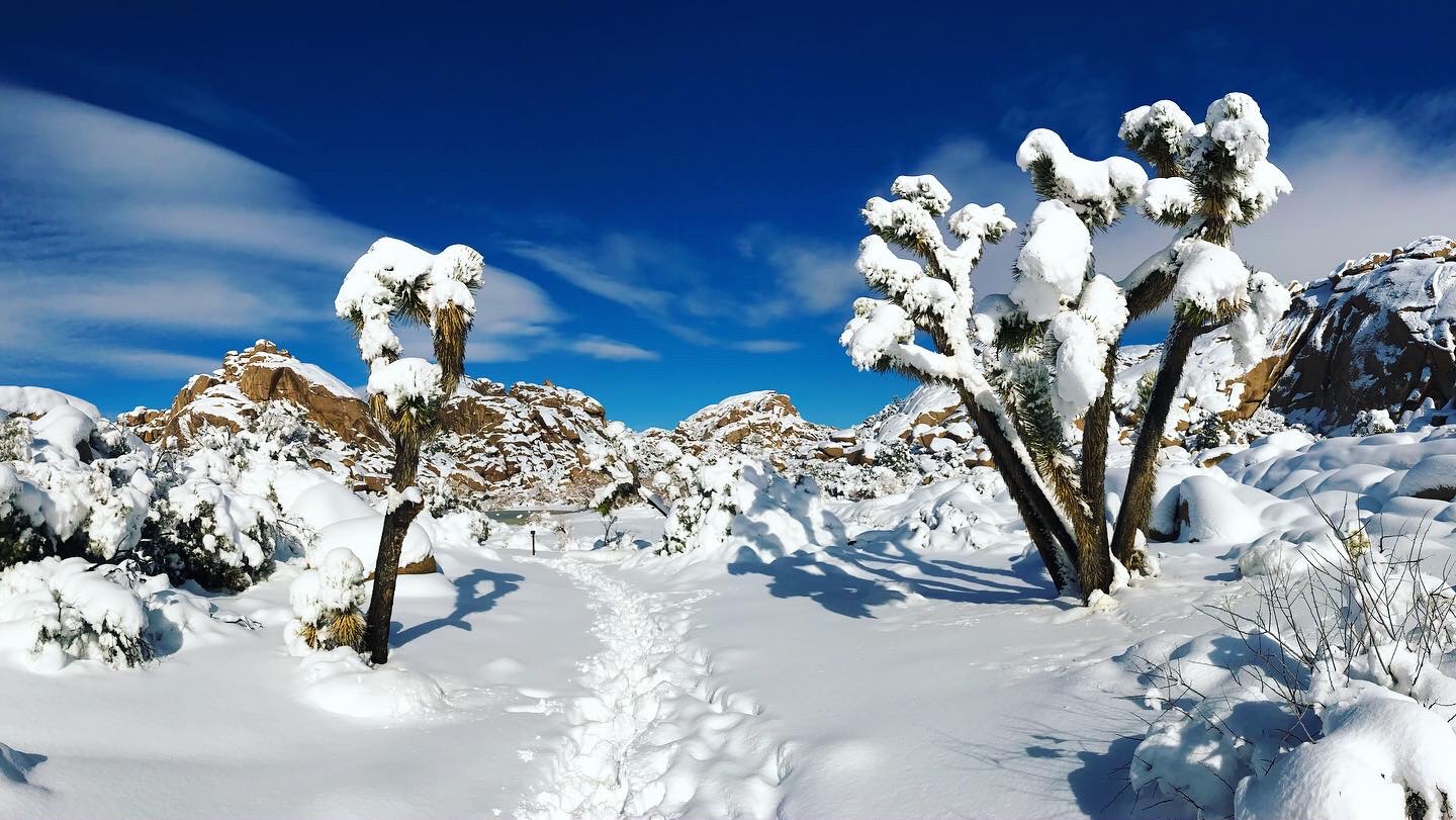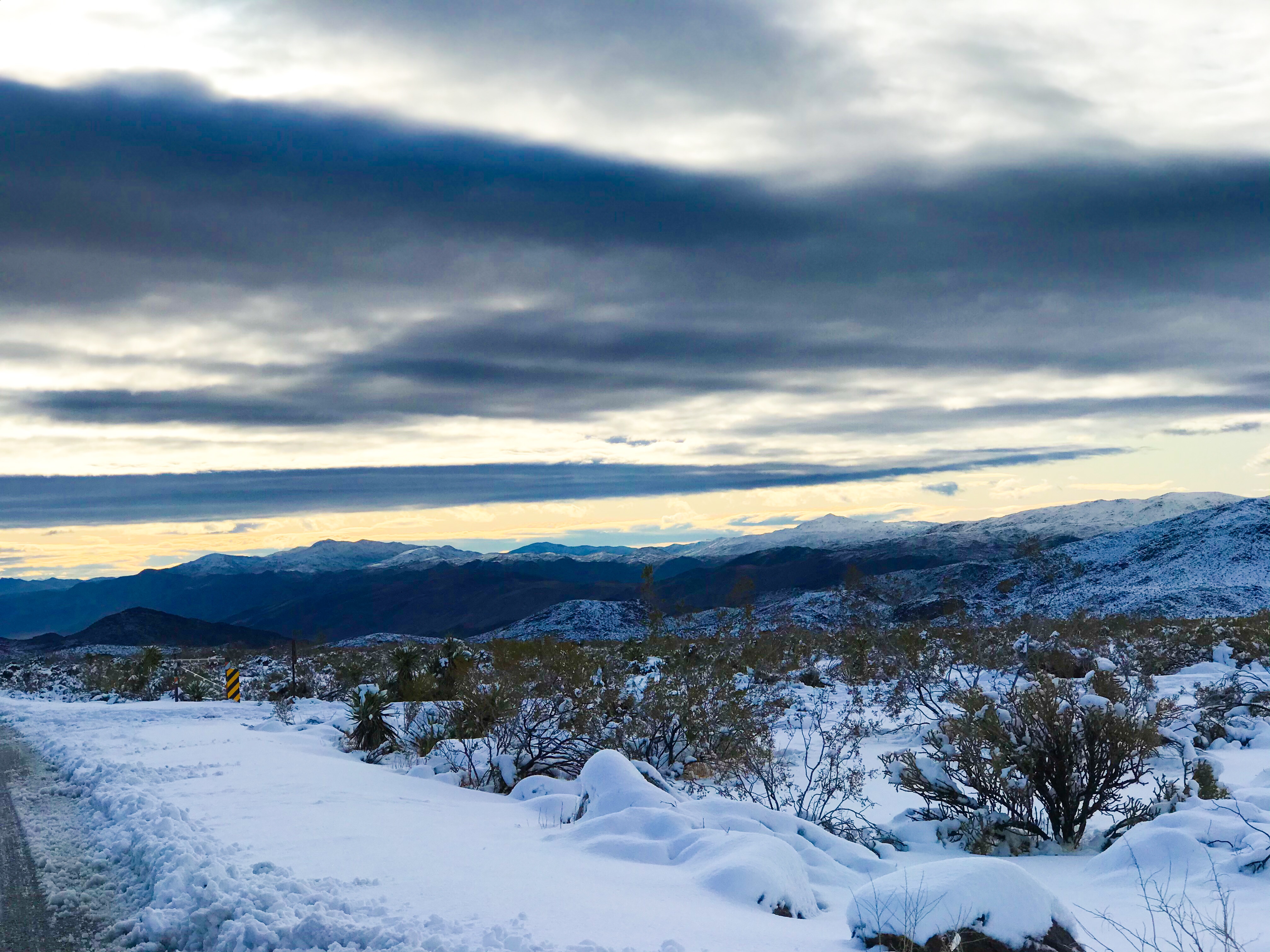 So, we spent our first day locked inside the hotel drinking bad red wine and watching The Office because the massive amounts of rain and snow were causing flash floods and washed out roads throughout the town of TwentyNine Palms and the neighboring towns.