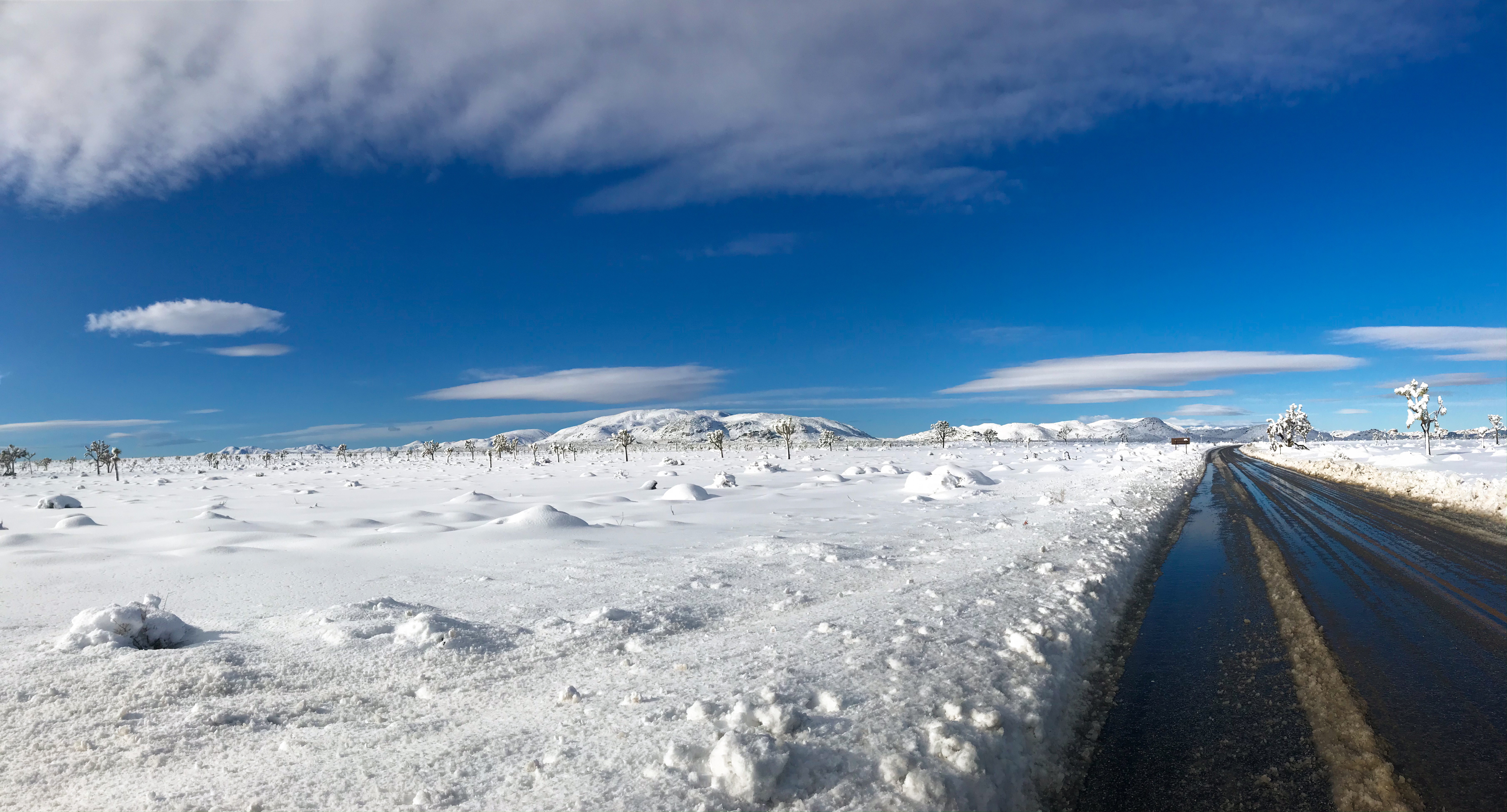 Finally getting into the park felt great. The Oasis Visitor’s Center had no snow, and as we slowly climbed up into the mountains, the snow capped peaks started peaking out around the curves in the road.