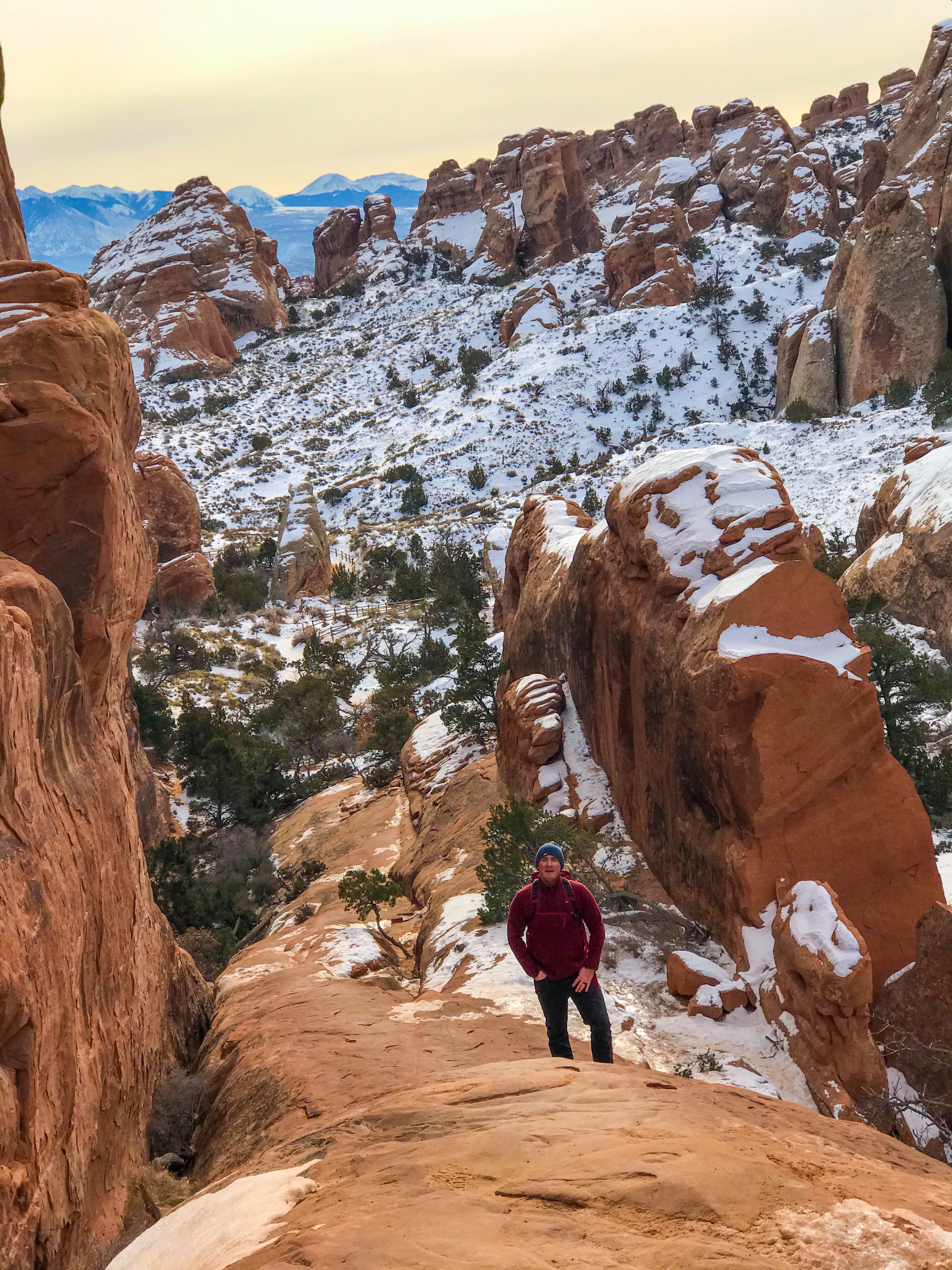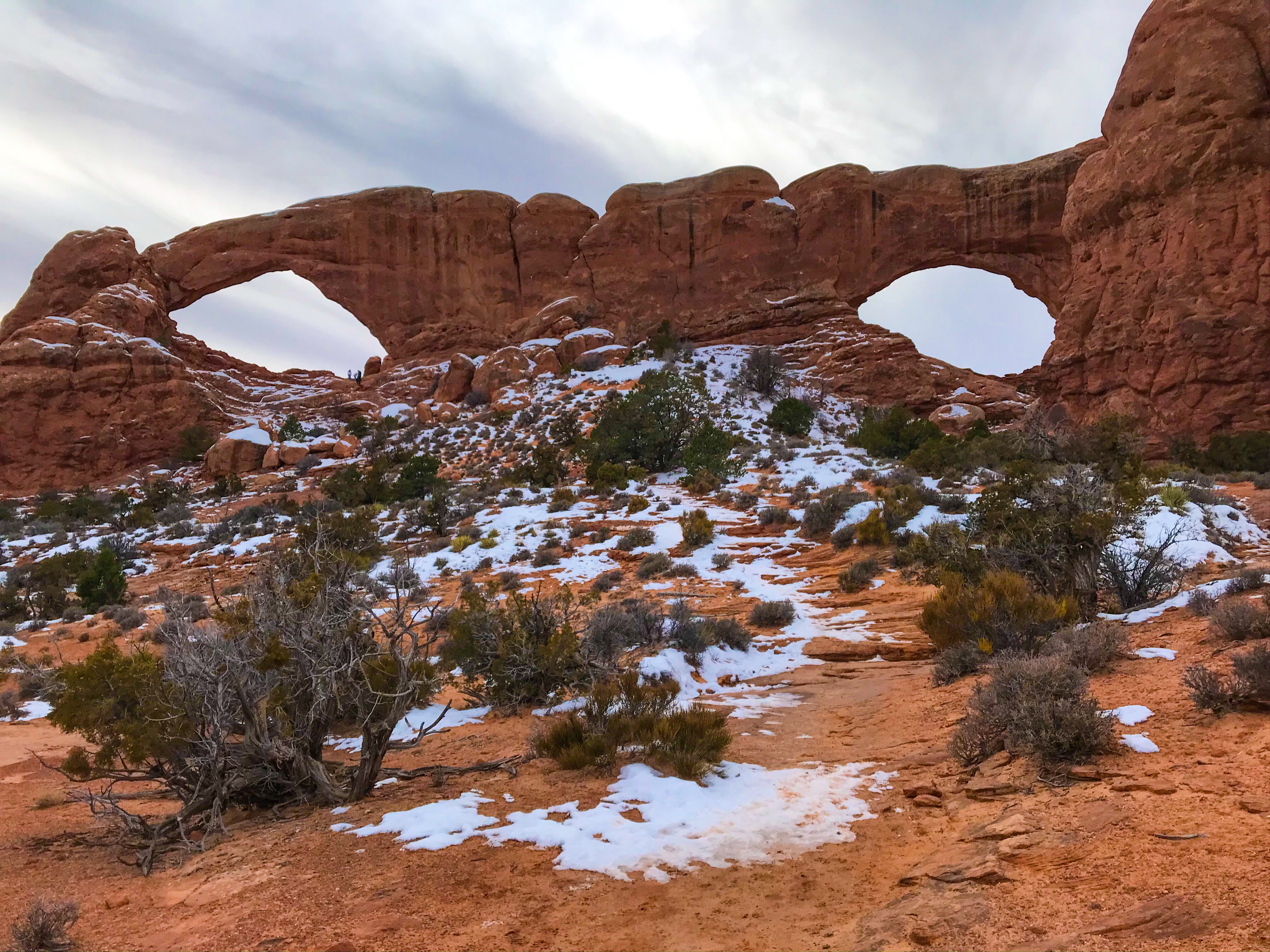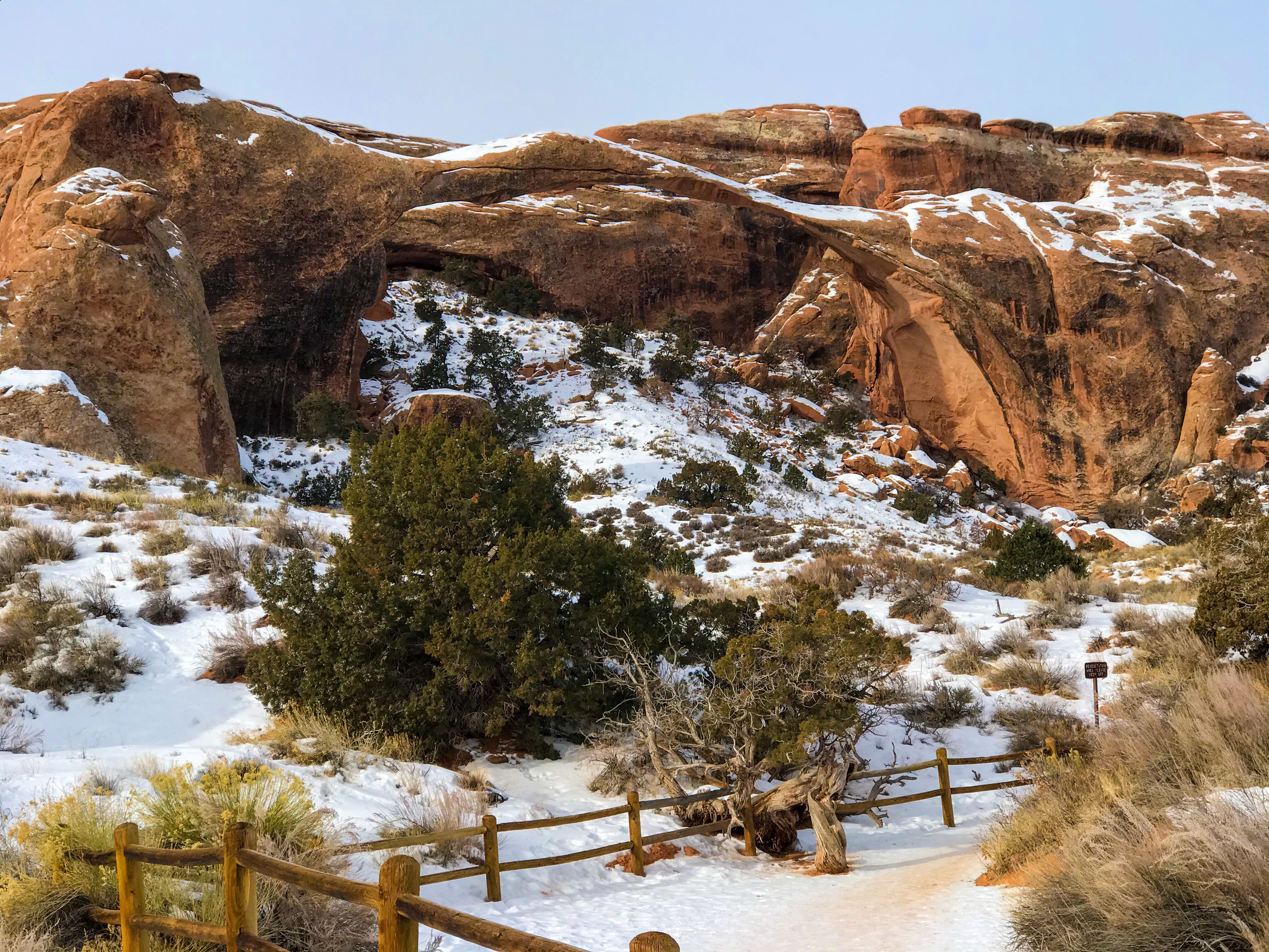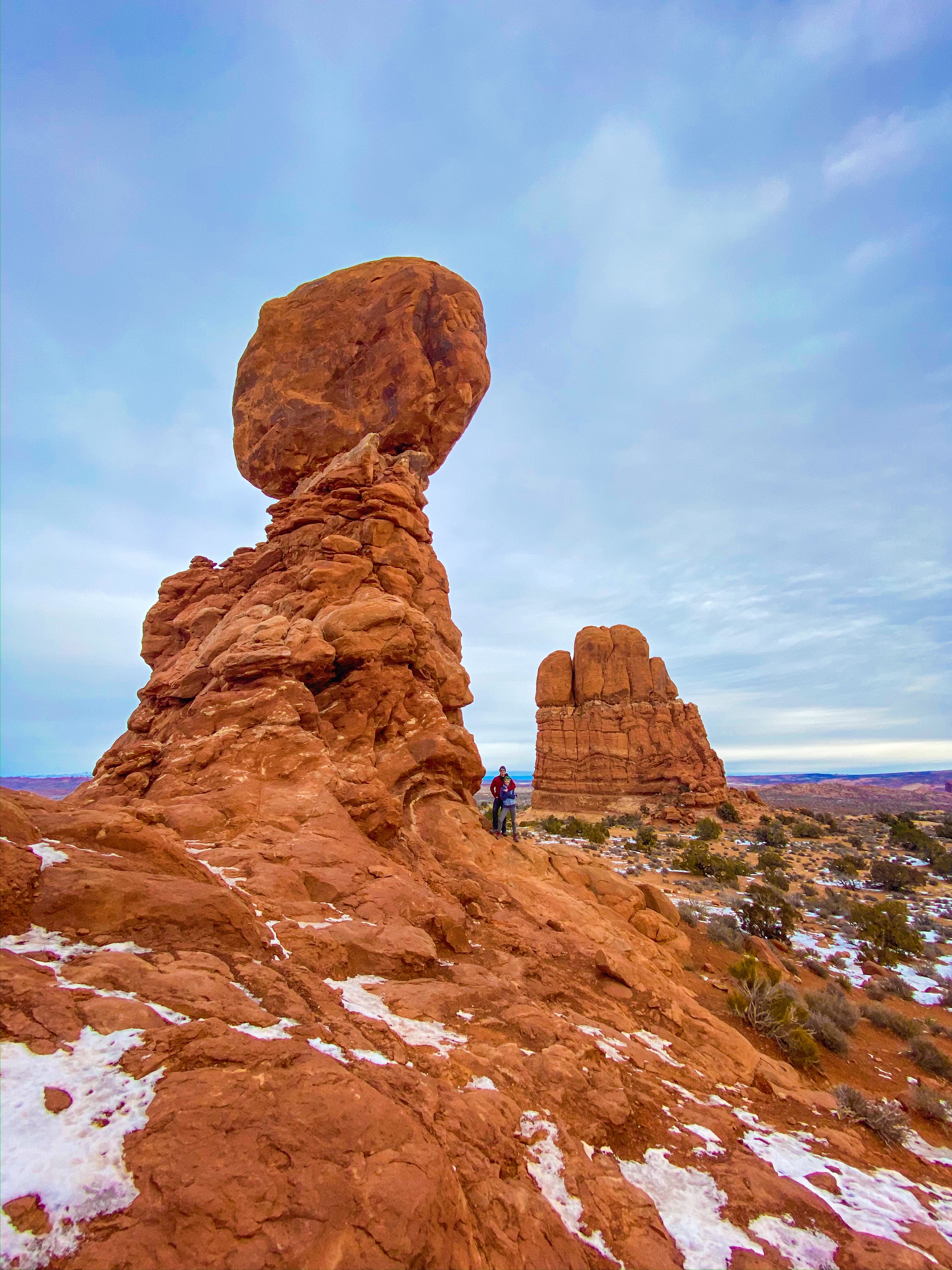 The most famous arch, arguably in the world, Delicate Arch is found at the end of a 1.5 mile hike. When we went, the last part of the path was very icy, to the point where people were literally sliding down on their butts. Wearing our YakTrax made the trail doable.