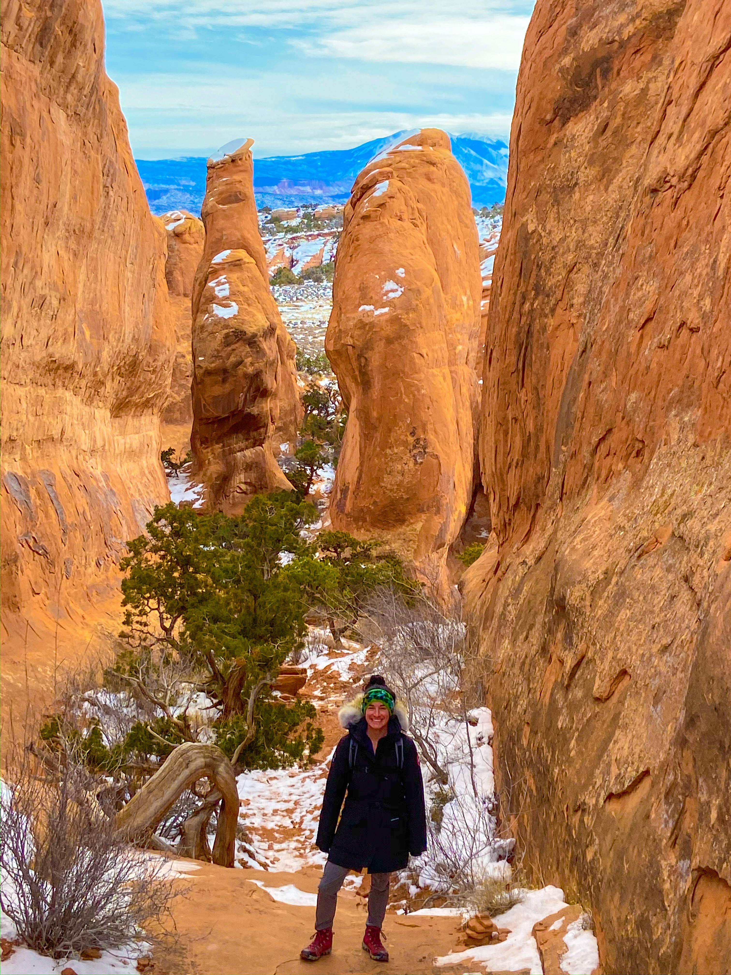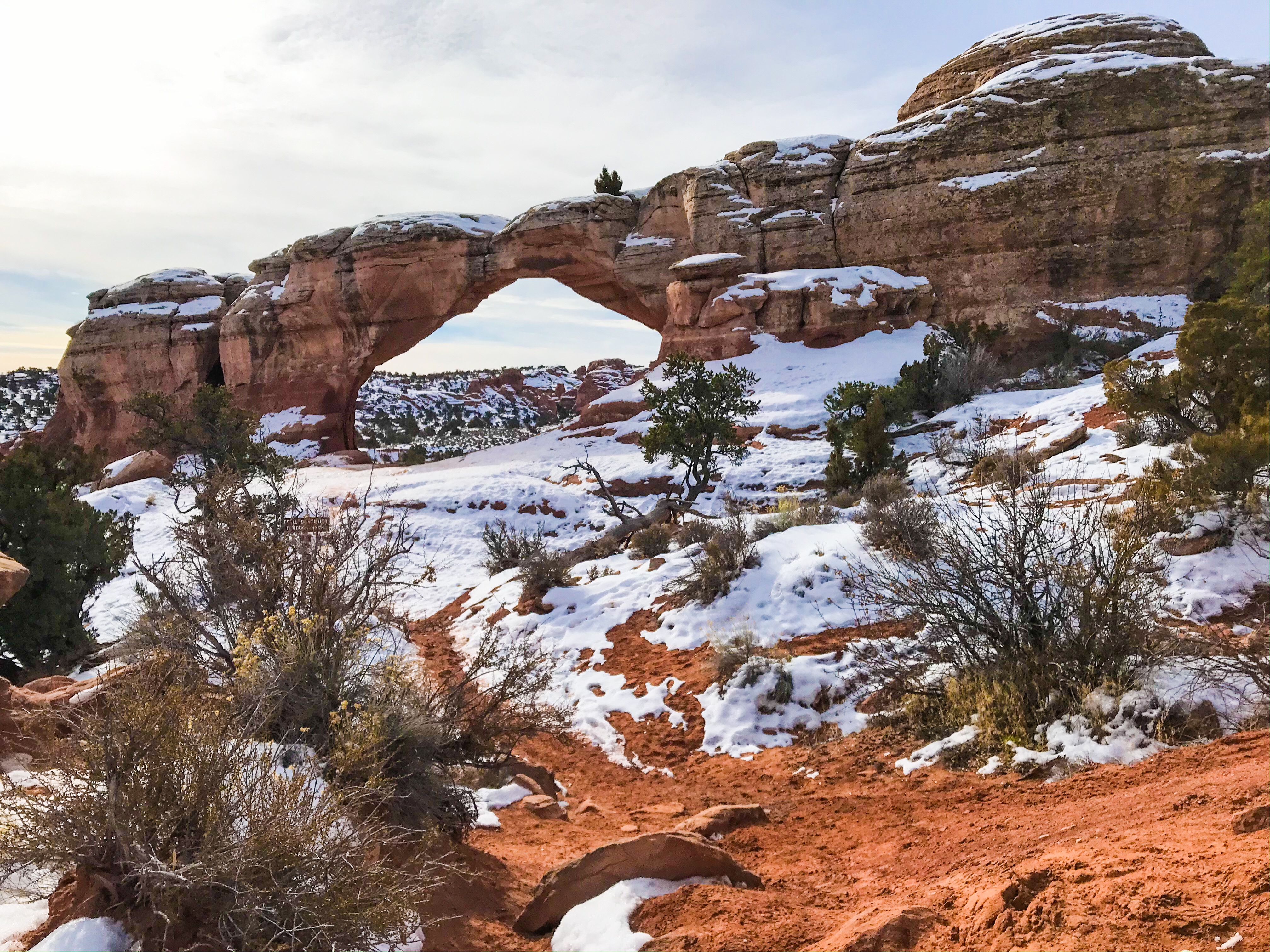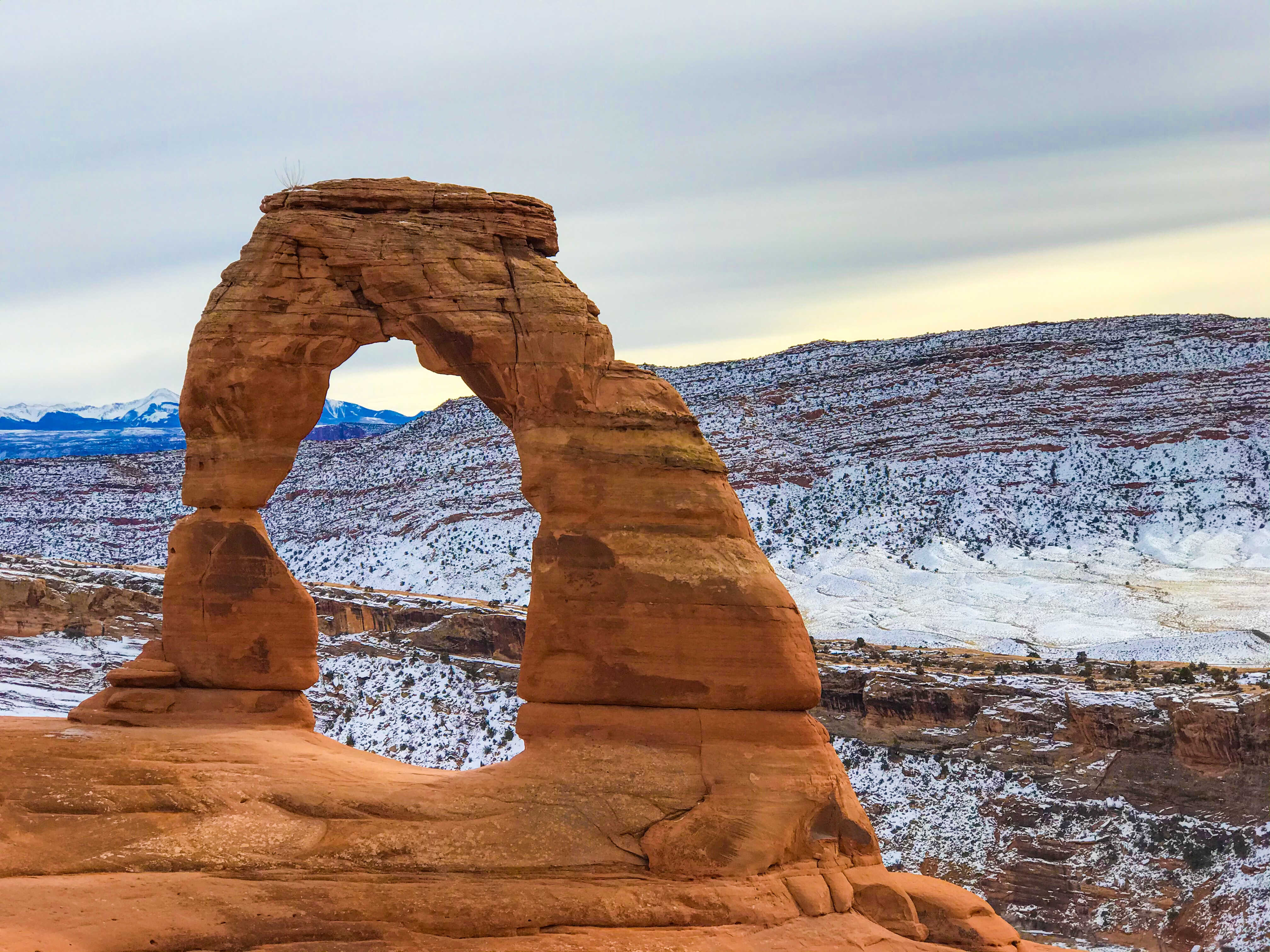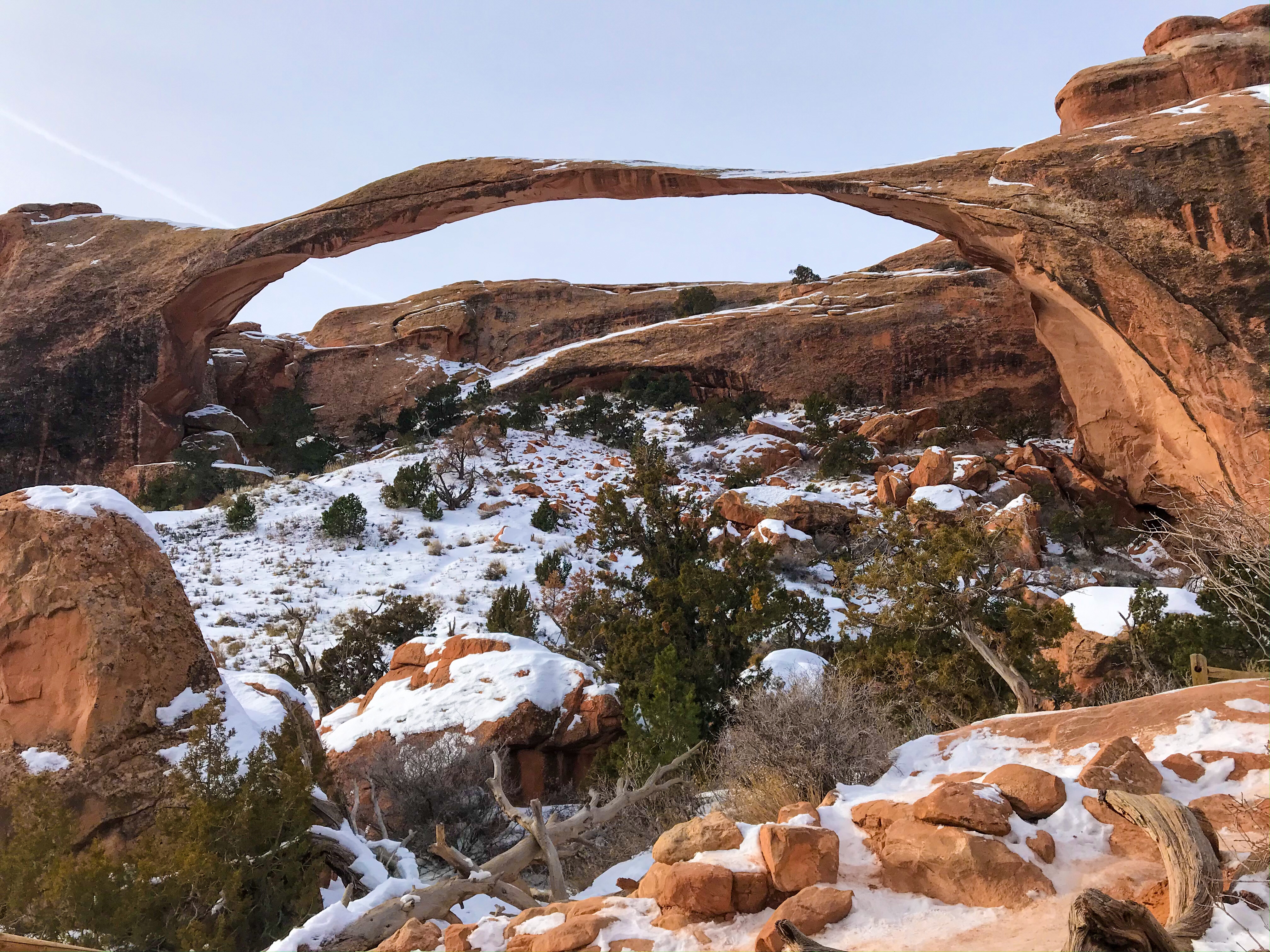 The most famous arch, arguably in the world, Delicate Arch is found at the end of a 1.5 mile hike. When we went, the last part of the path was very icy, to the point where people were literally sliding down on their butts. Wearing our YakTrax made the trail doable.