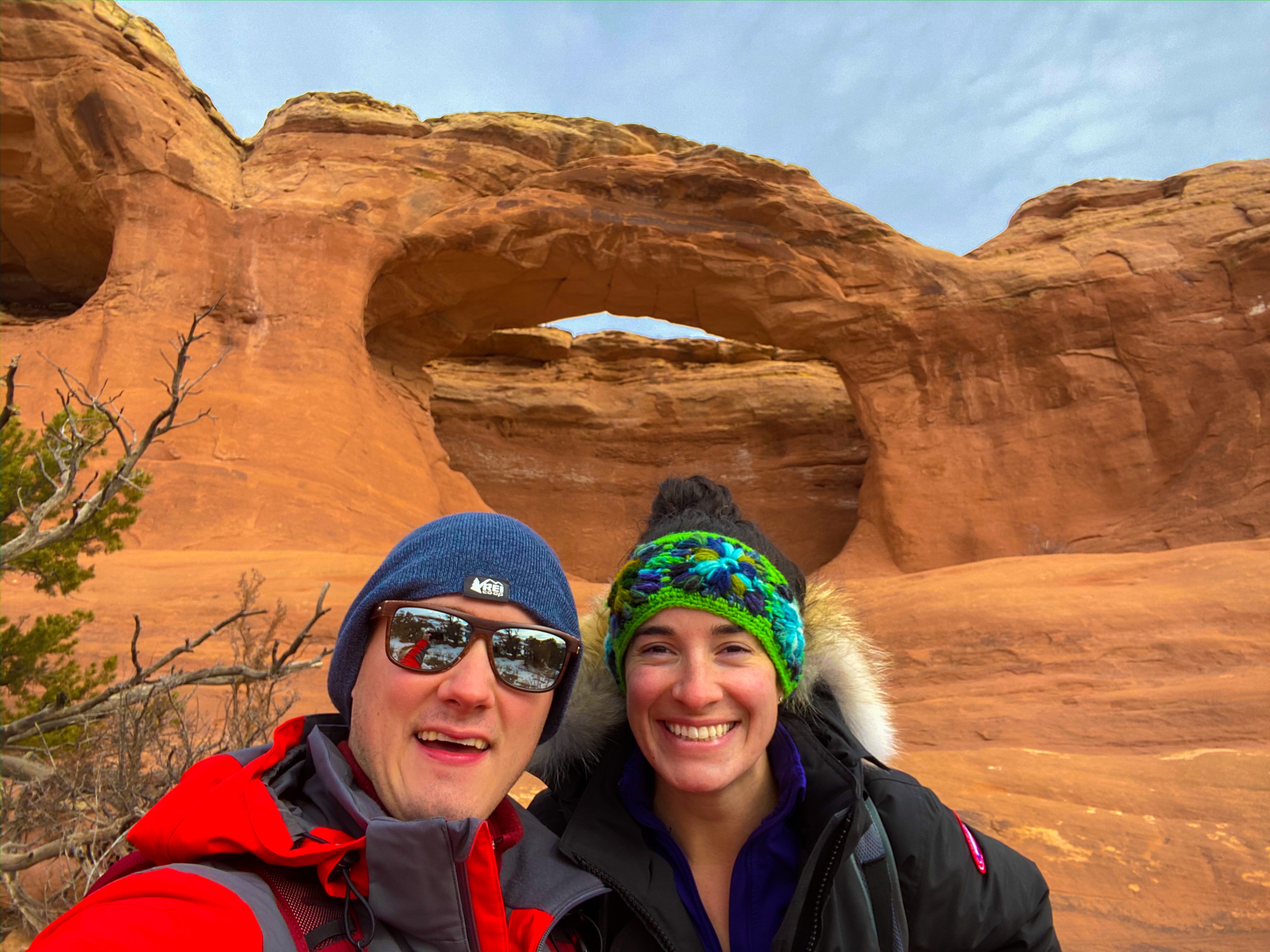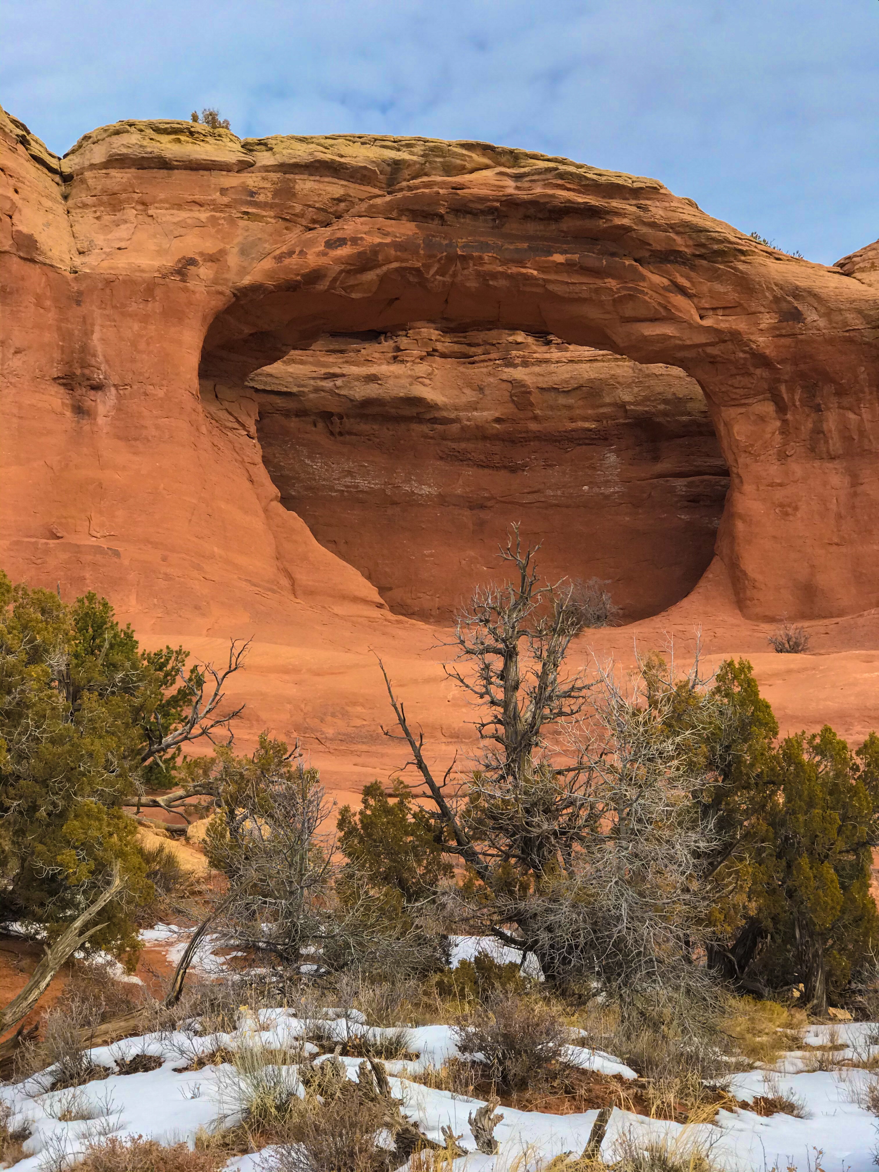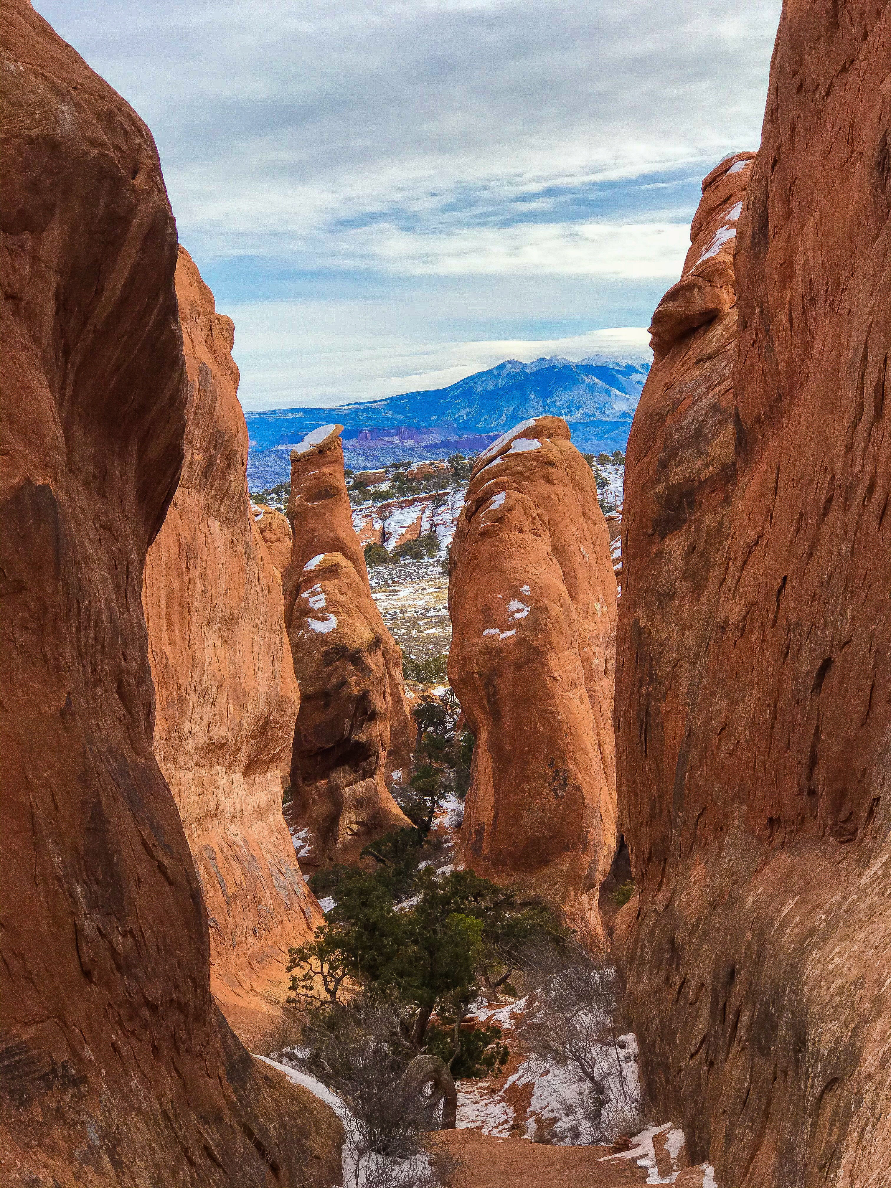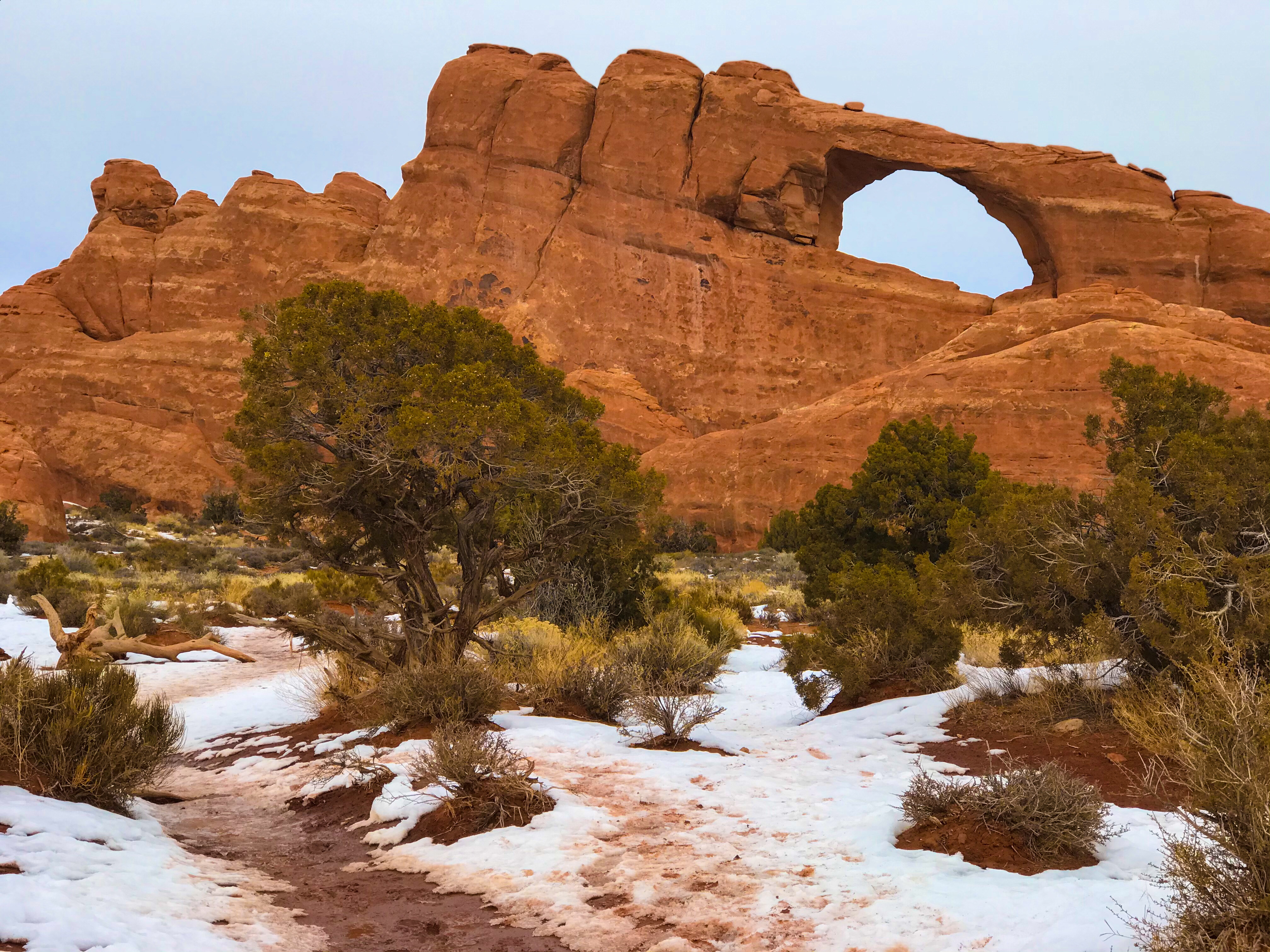 The most famous arch, arguably in the world, Delicate Arch is found at the end of a 1.5 mile hike. When we went, the last part of the path was very icy, to the point where people were literally sliding down on their butts. Wearing our YakTrax made the trail doable.