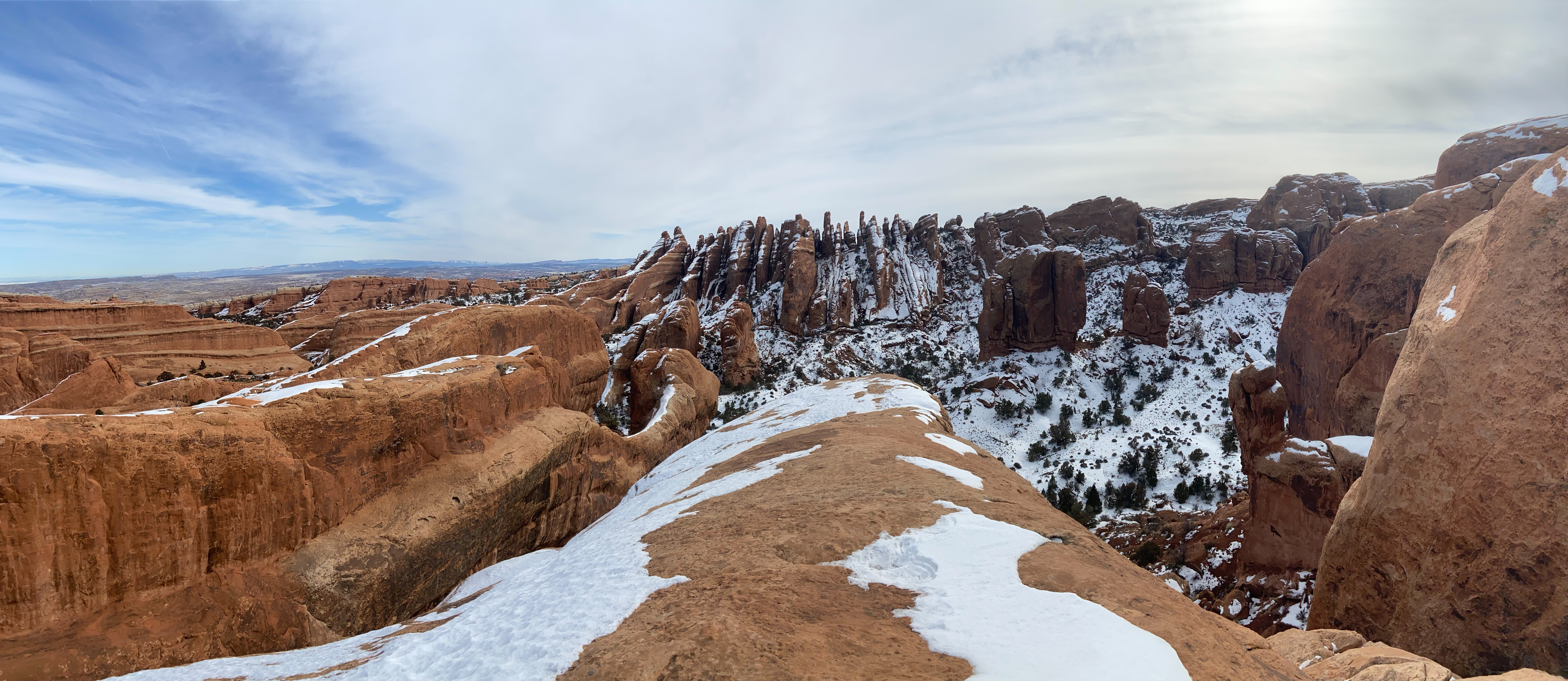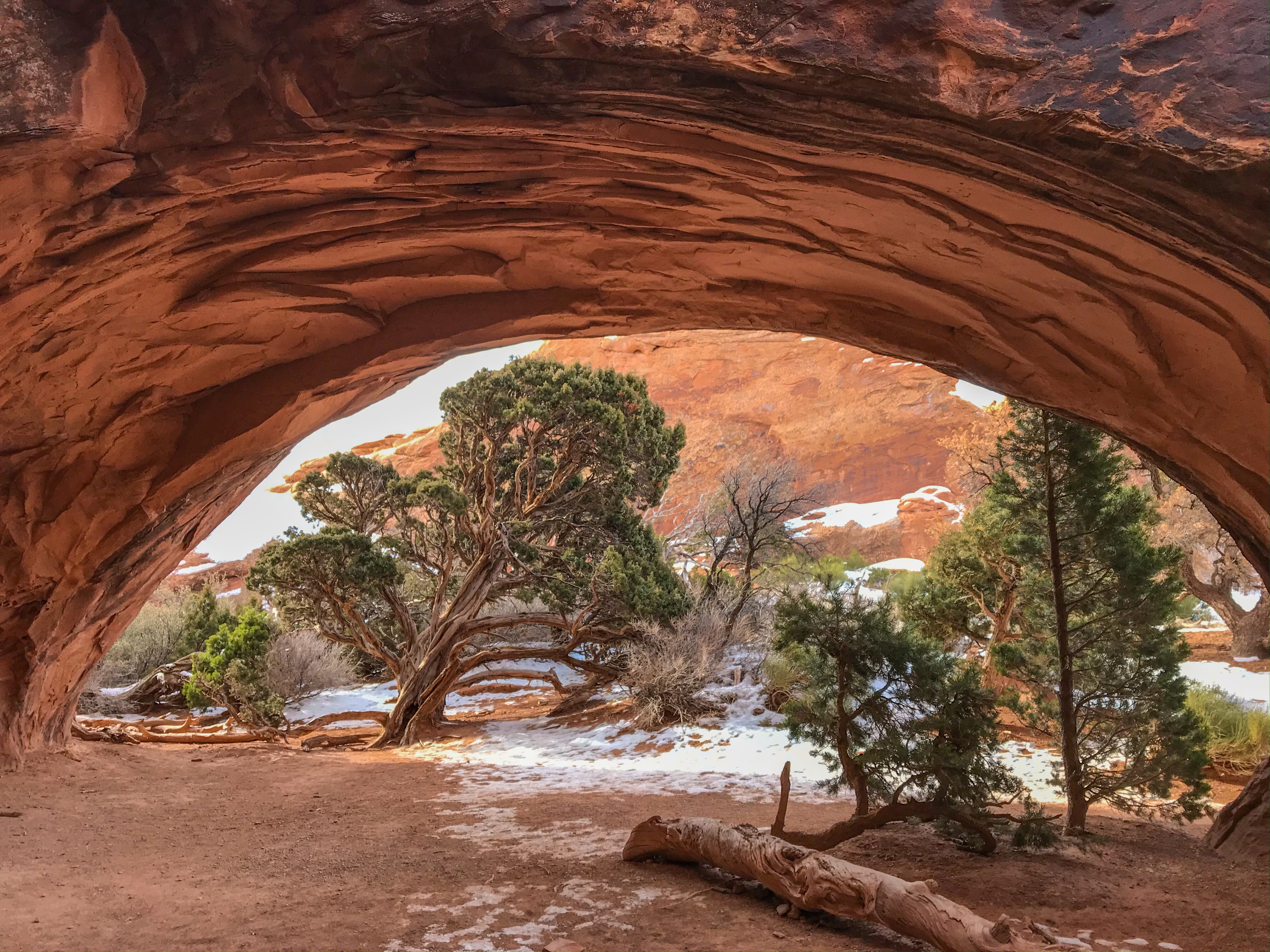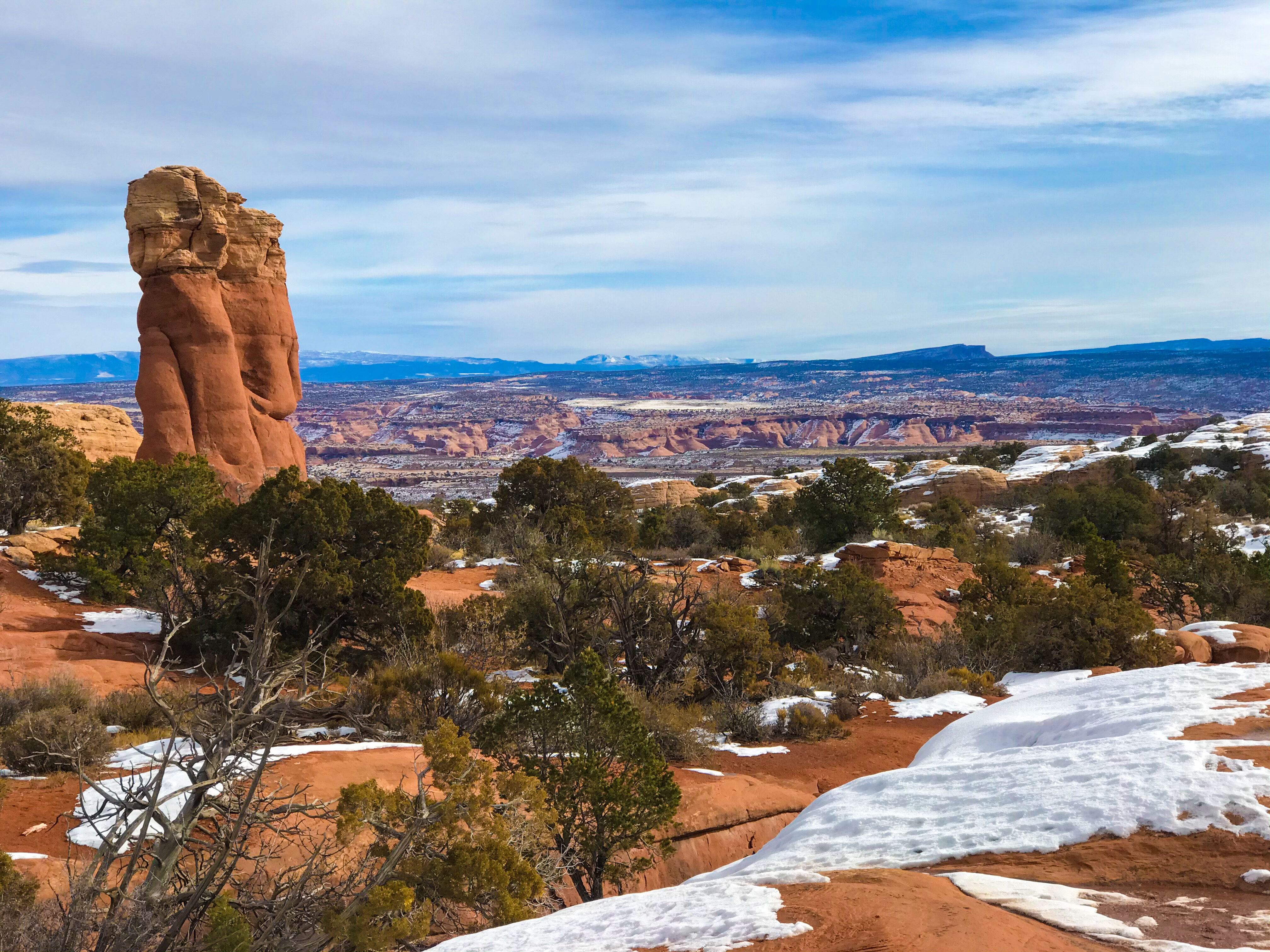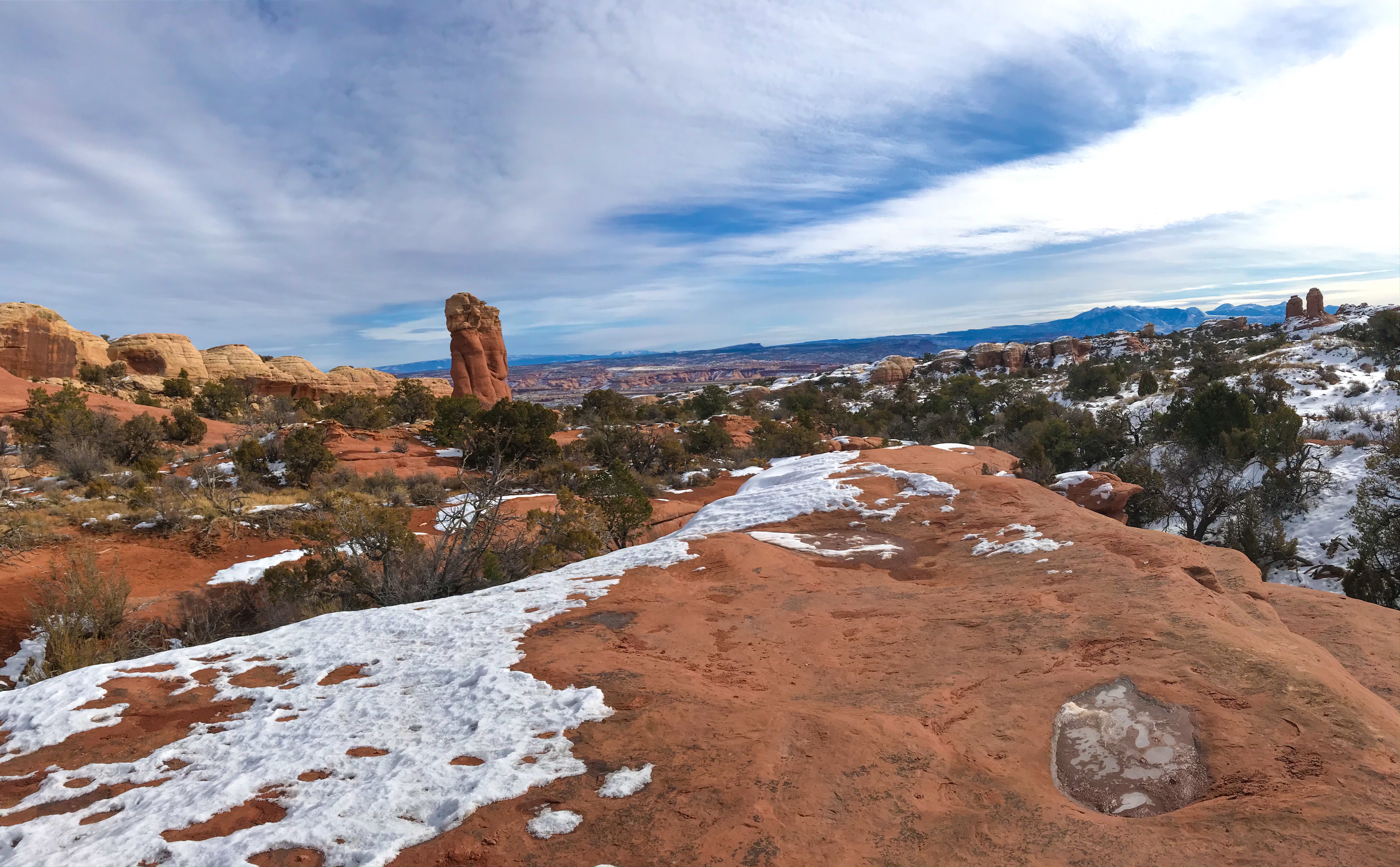 The most famous arch, arguably in the world, Delicate Arch is found at the end of a 1.5 mile hike. When we went, the last part of the path was very icy, to the point where people were literally sliding down on their butts. Wearing our YakTrax made the trail doable.