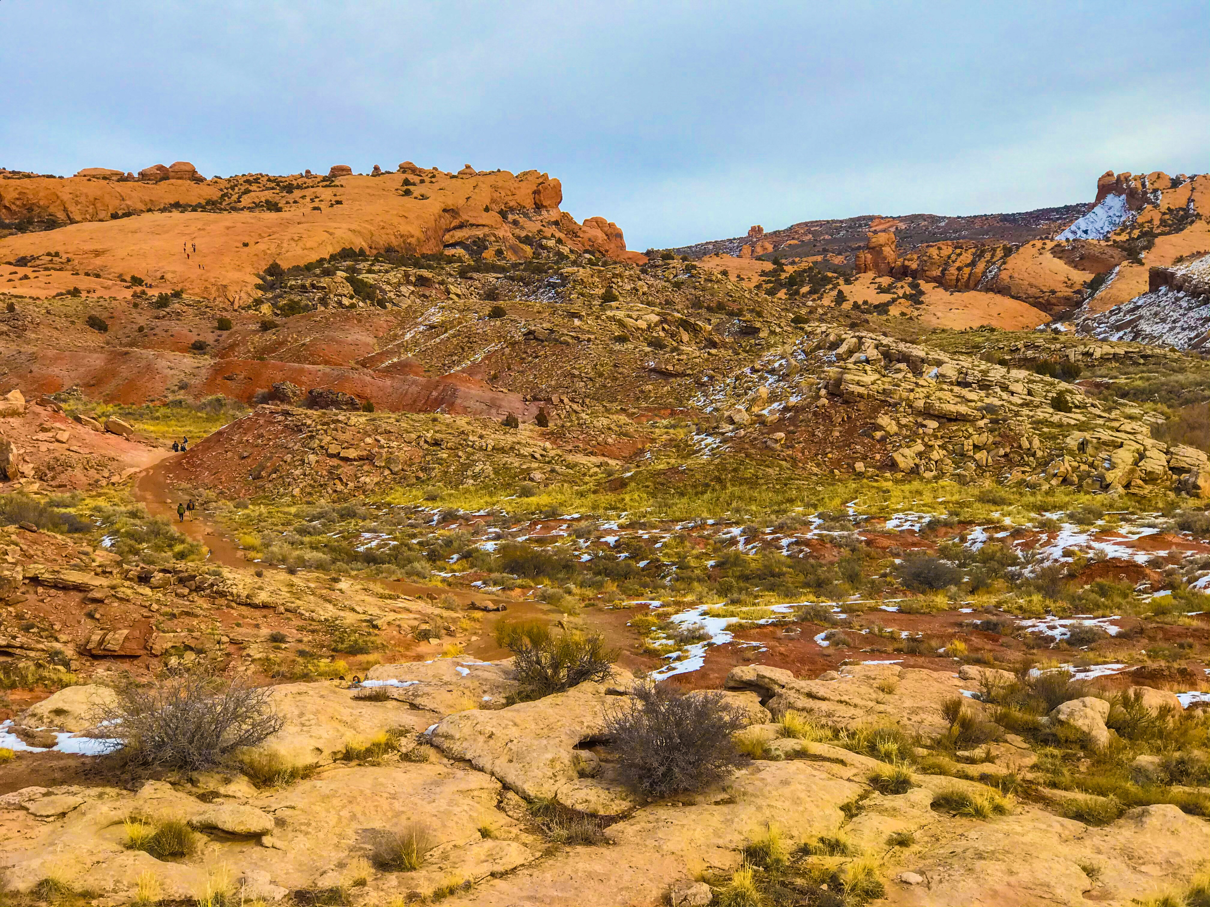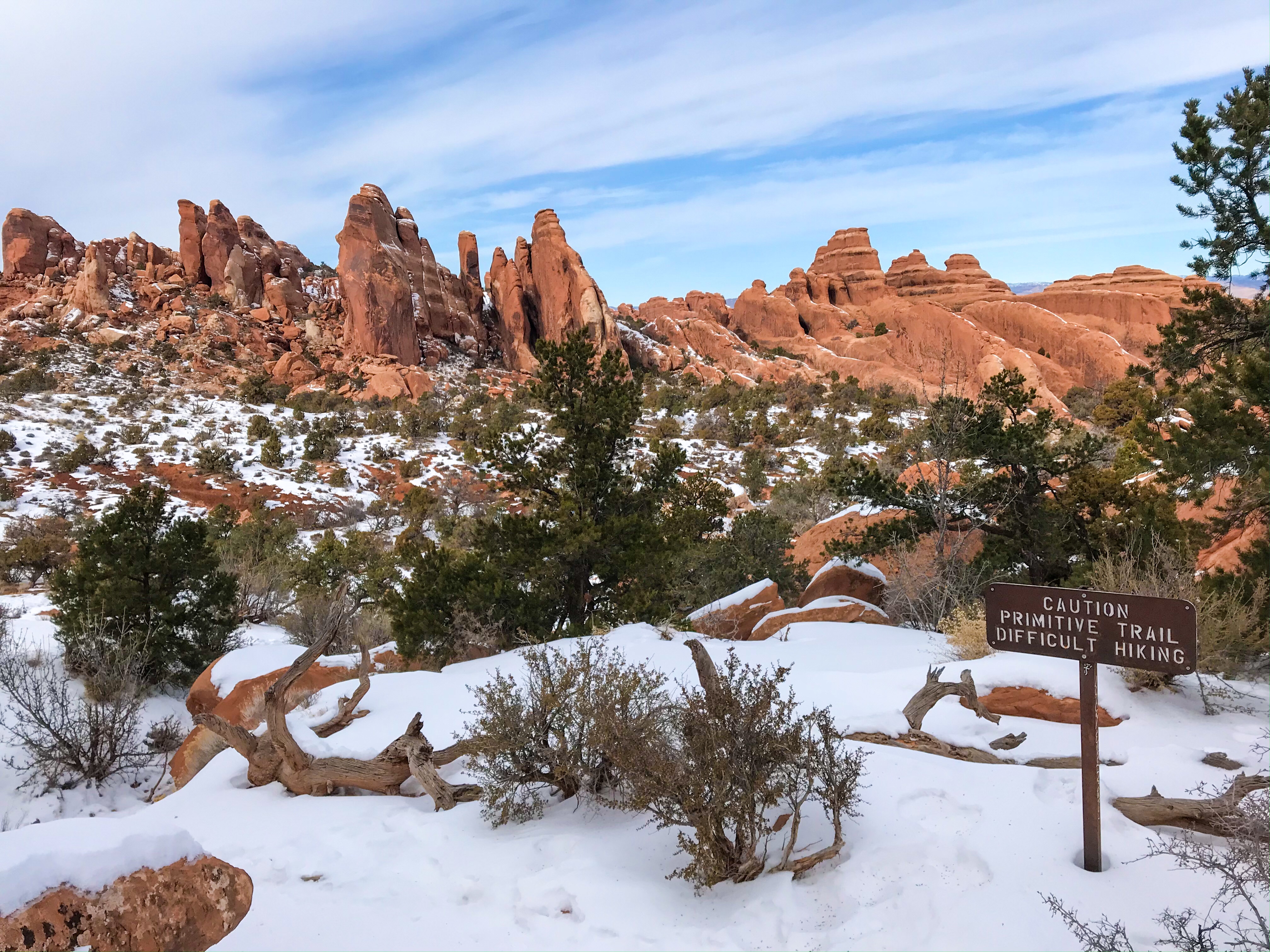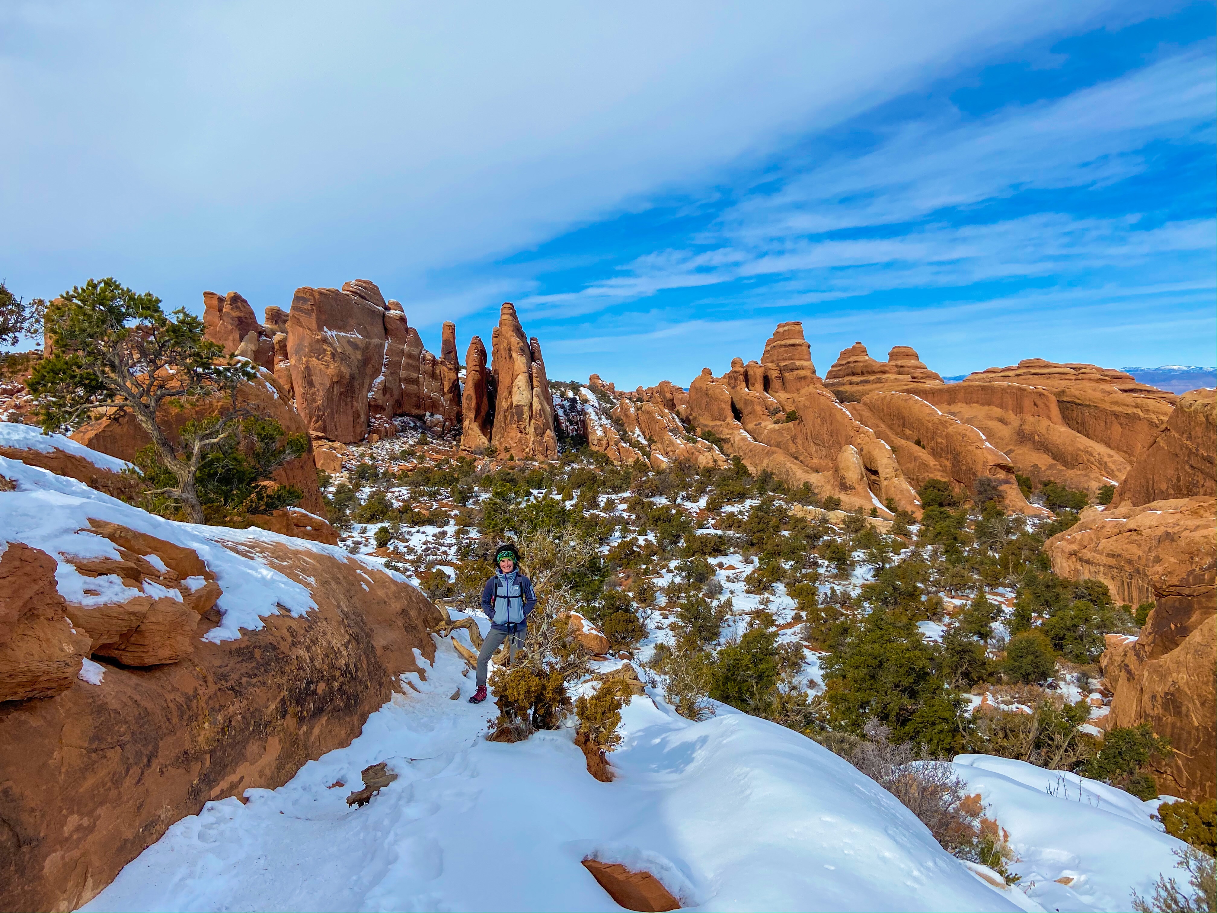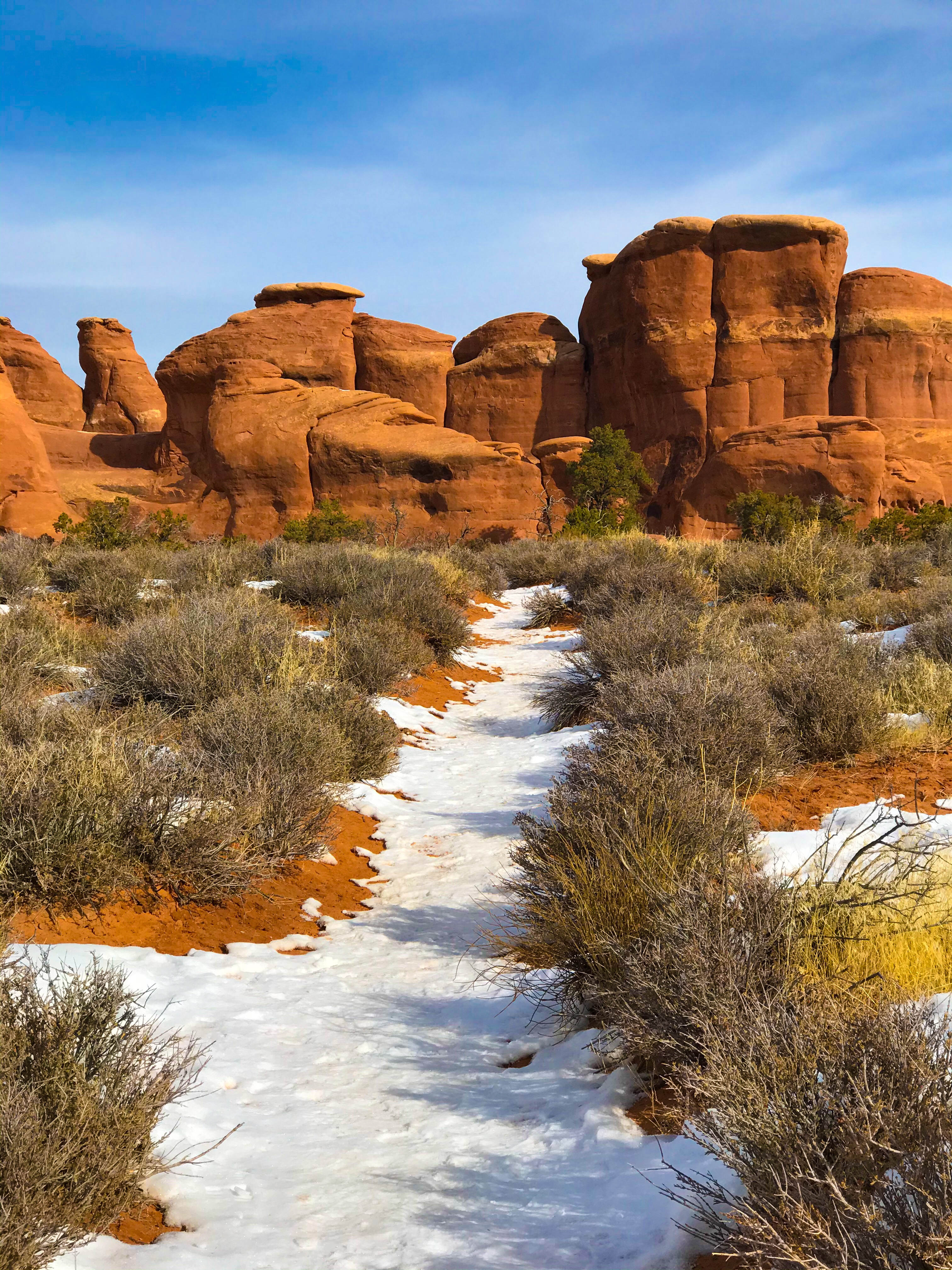 During the winter months, the park gets a decent amount of snow and a lot of ice. Hiking trails like Delicate Arch and Devil’s Playground Primitive Loop area near impassible without traction cleats – we have YakTrax, but also saw a number of people using Kahtoola’s for even more traction. We took them off most times when there was no longer a lot of snow and ice in an effort to protect the rocks (as you hike, you’ll see a lot of white, small scrapes from cleats), which was fine since they’re really easy to take on and off.