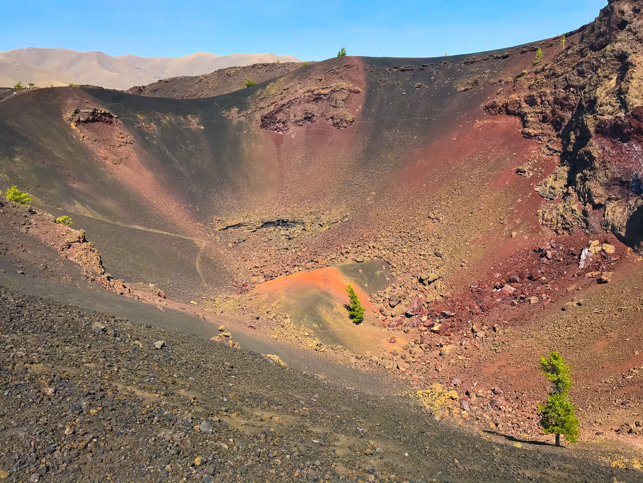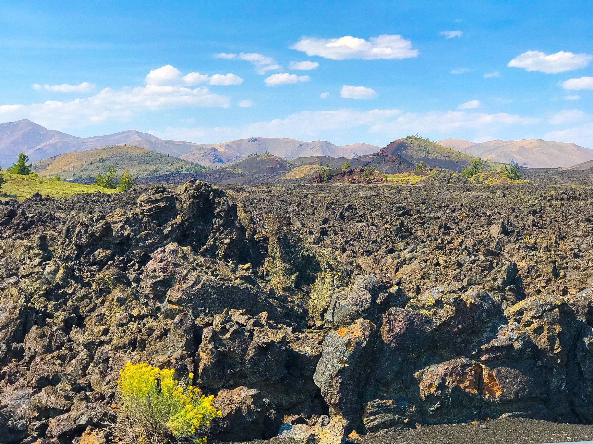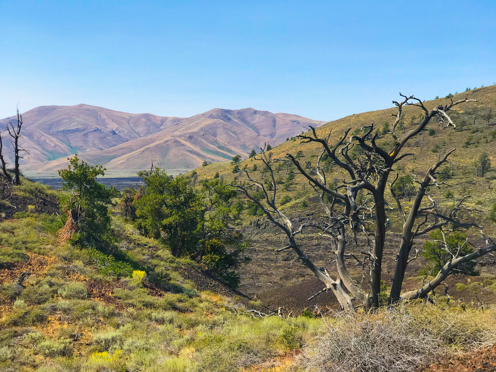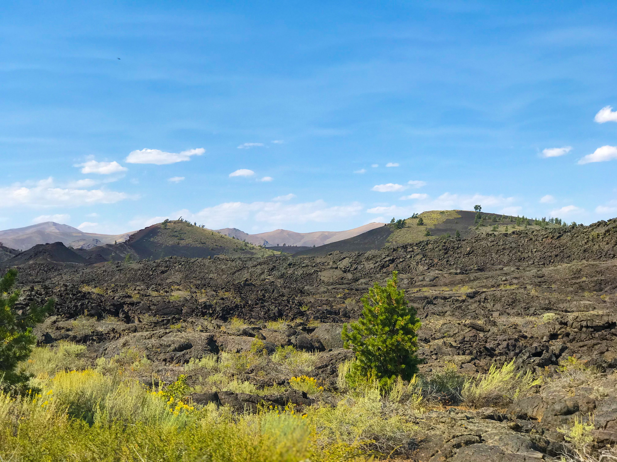 Crater of the Moon is a large lava field. At some points in the park all you can see for miles is spiraling lava (more on that in a few), and in other areas plants and trees grow in lava fields. It reminded me that despite destruction, the world can reset itself… hopefully even in COVID.